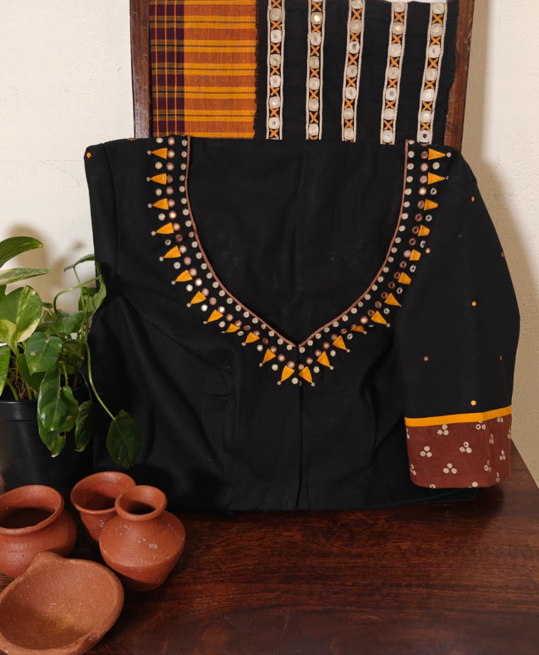 Our artisans creatively hand embroider, hand paint and hand print the blouses that come to you from the design house of SVASA. We use hand woven fabric extensively. You may notice very minute, almost insignificant flaws in the crafts since they are all handmade. We urge our patrons to overlook a few human errors that may have occurred in the process. Our aspirations are towards an empowered society, focusing on keeping traditional needlecraft alive for a long time to come.