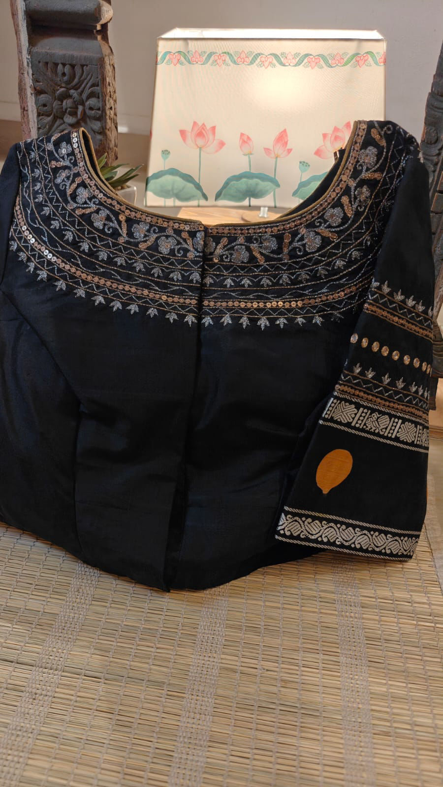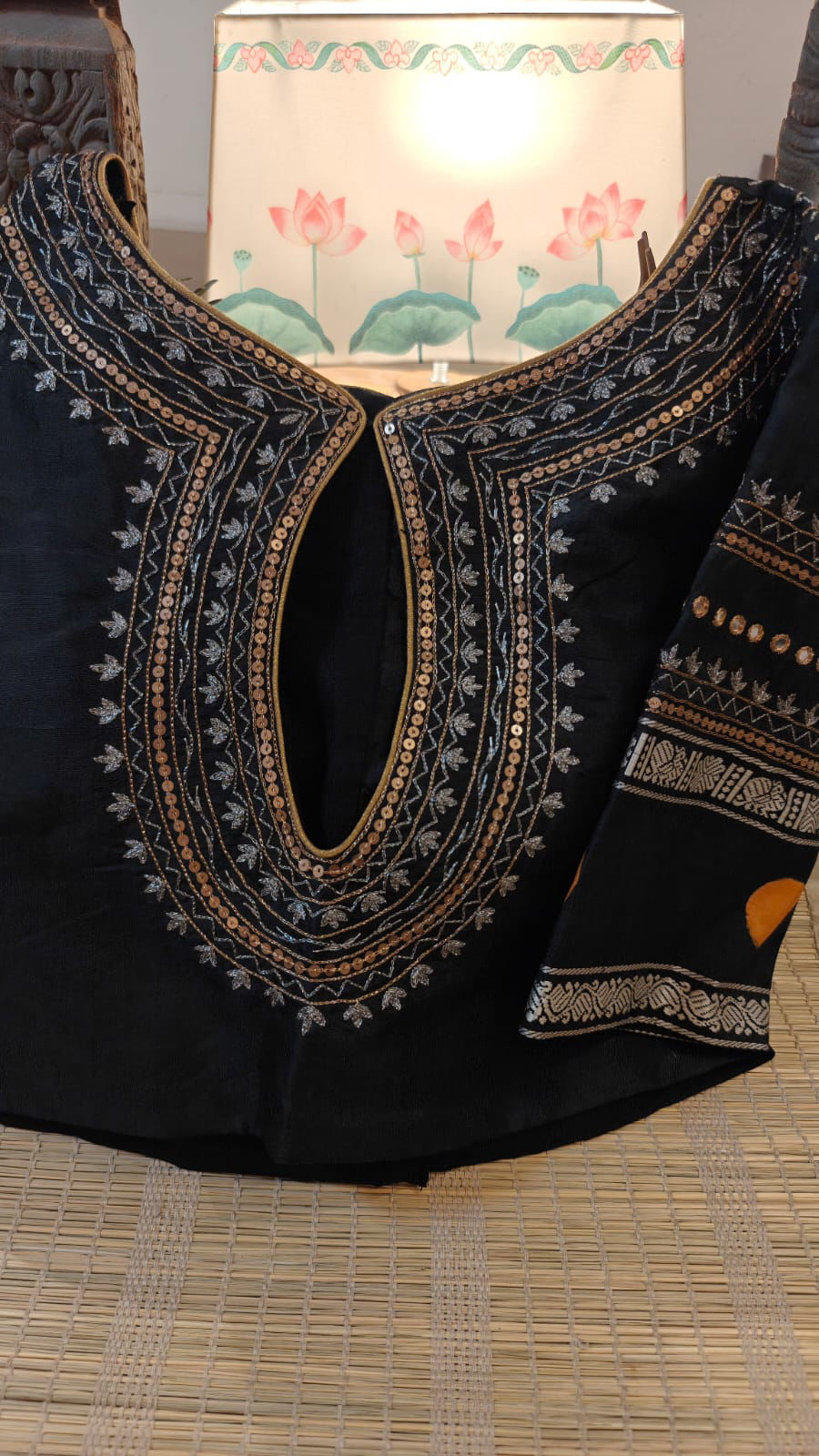Our artisans creatively hand embroider, hand paint and hand print the blouses that come to you from the design house of SVASA. We use hand woven fabric extensively. You may notice very minute, almost insignificant flaws in the crafts since they are all handmade. We urge our patrons to overlook a few human errors that may have occurred in the process. Our aspirations are towards an empowered society, focusing on keeping traditional needlecraft alive for a long time to come.