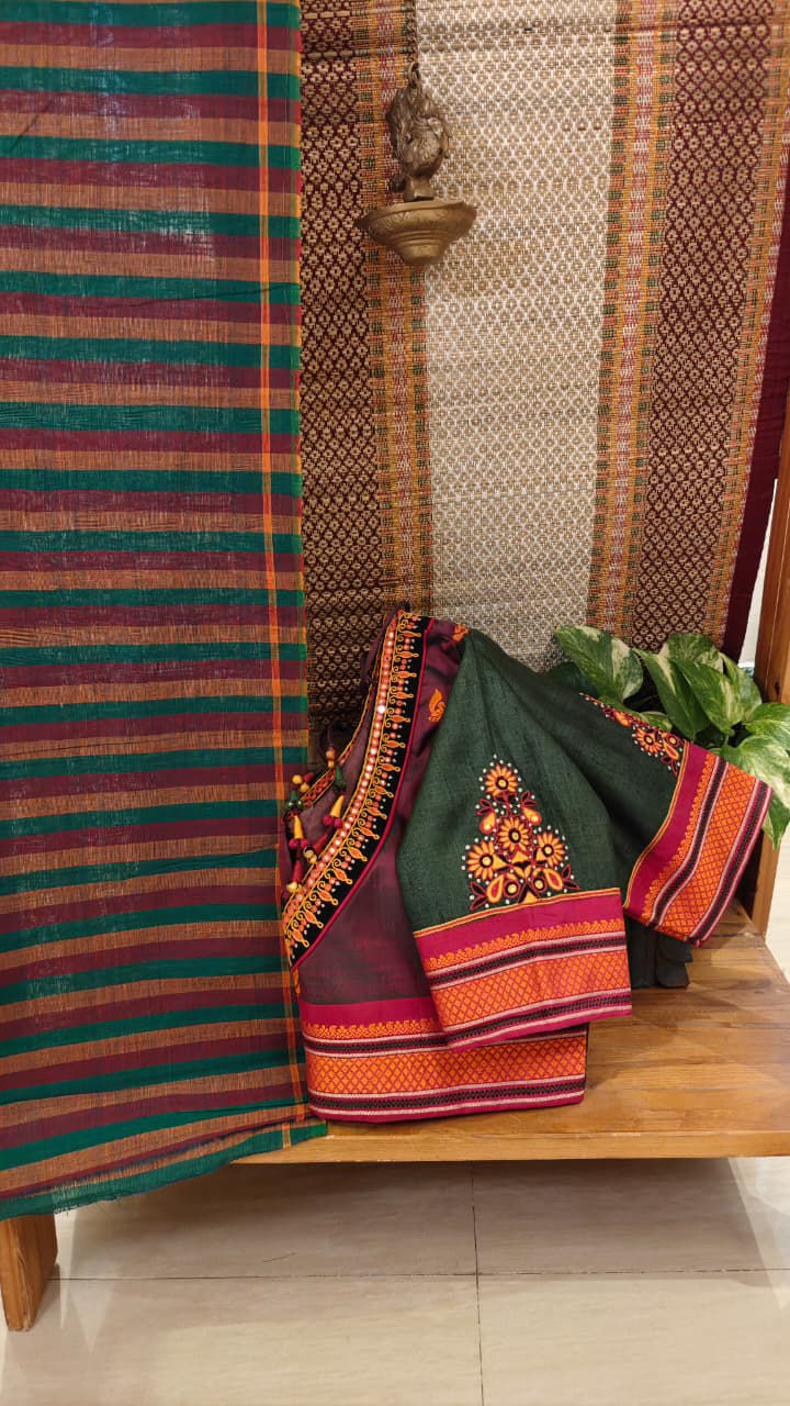 Our artisans creatively hand embroider, hand paint and hand print the blouses that come to you from the design house of SVASA. We use hand woven fabric extensively. You may notice very minute, almost insignificant flaws in the crafts since they are all handmade. We urge our patrons to overlook a few human errors that may have occurred in the process. Our aspirations are towards an empowered society, focusing on keeping traditional needlecraft alive for a long time to come.