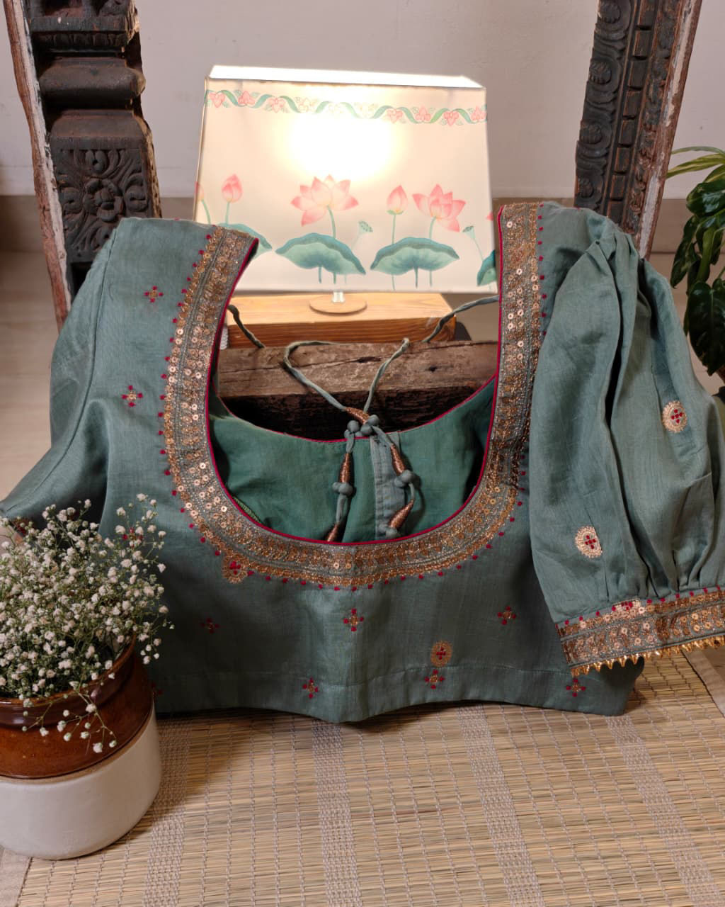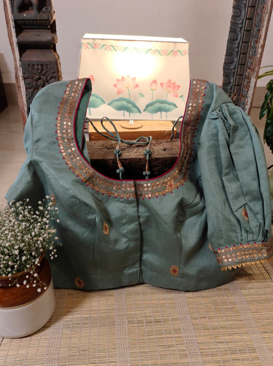 Our artisans creatively hand embroider, hand paint and hand print the blouses that come to you from the design house of SVASA. We use hand woven fabric extensively. You may notice very minute, almost insignificant flaws in the crafts since they are all handmade. We urge our patrons to overlook a few human errors that may have occurred in the process. Our aspirations are towards an empowered society, focusing on keeping traditional needlecraft alive for a long time to come.