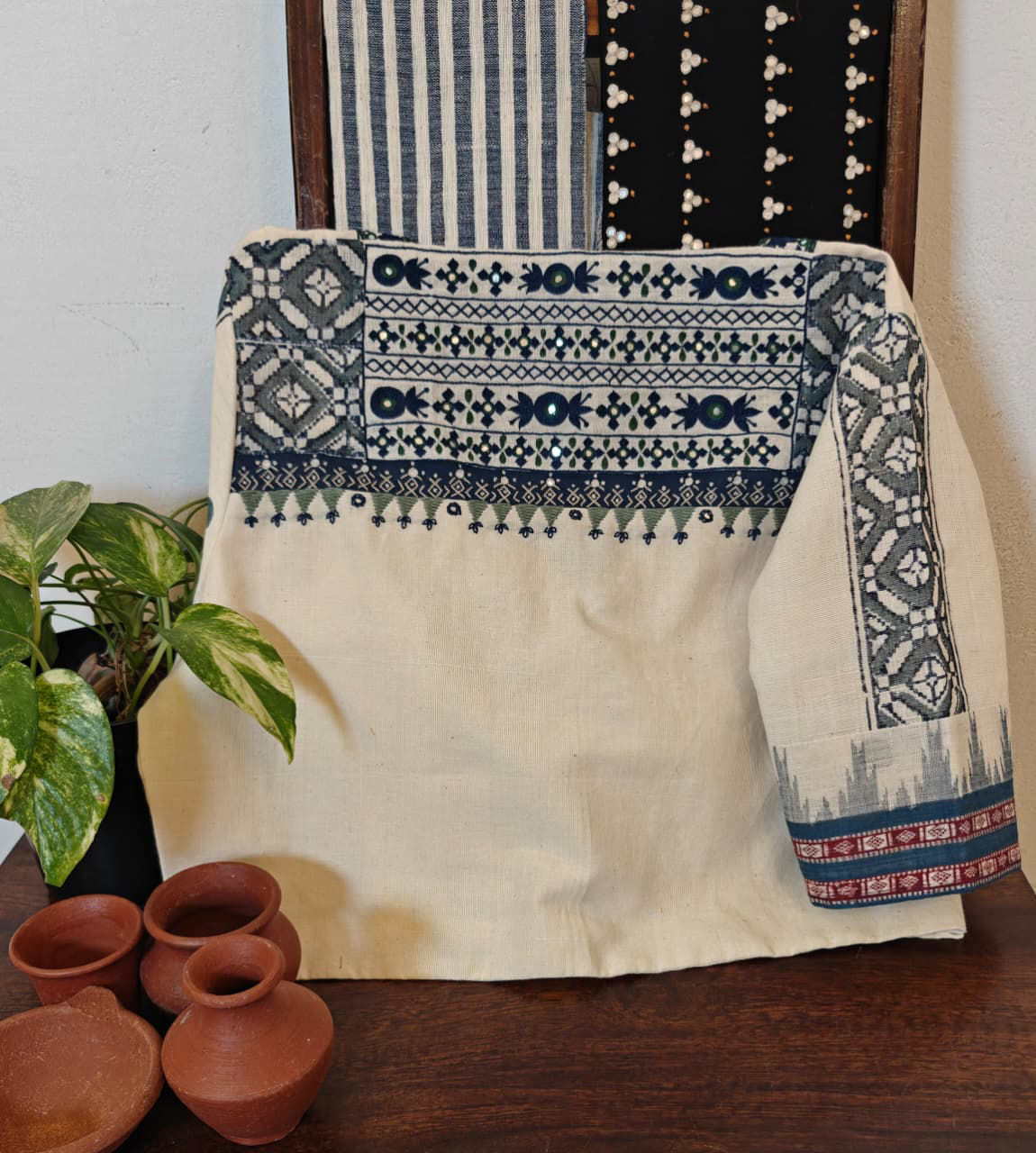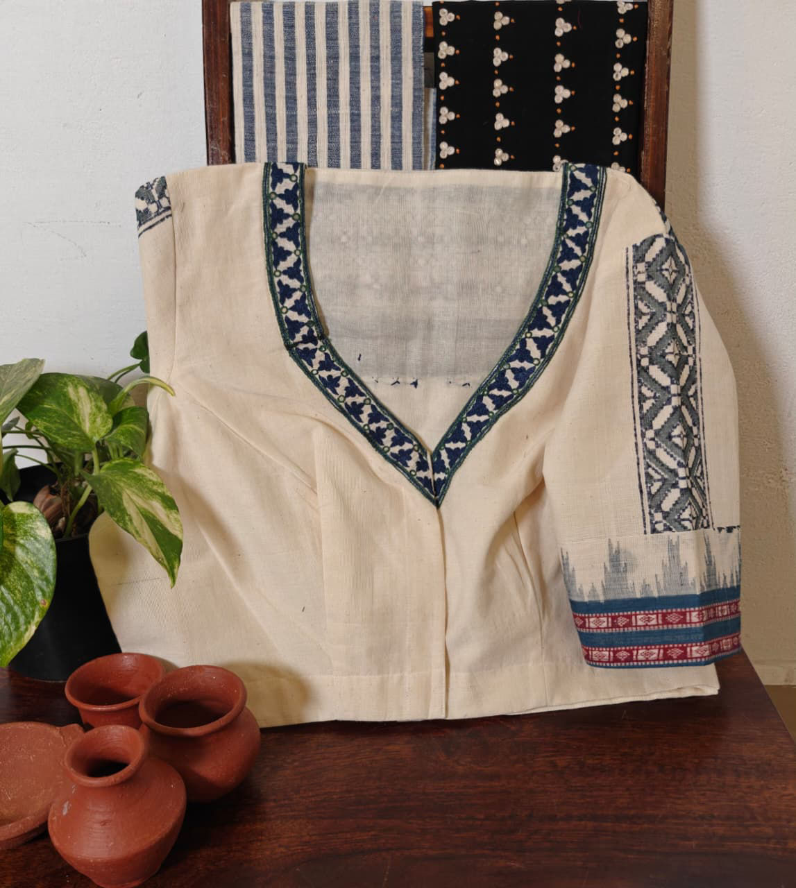 Our artisans creatively hand embroider, hand paint and hand print the blouses that come to you from the design house of SVASA. We use hand woven fabric extensively. You may notice very minute, almost insignificant flaws in the crafts since they are all handmade. We urge our patrons to overlook a few human errors that may have occurred in the process. Our aspirations are towards an empowered society, focusing on keeping traditional needlecraft alive for a long time to come.