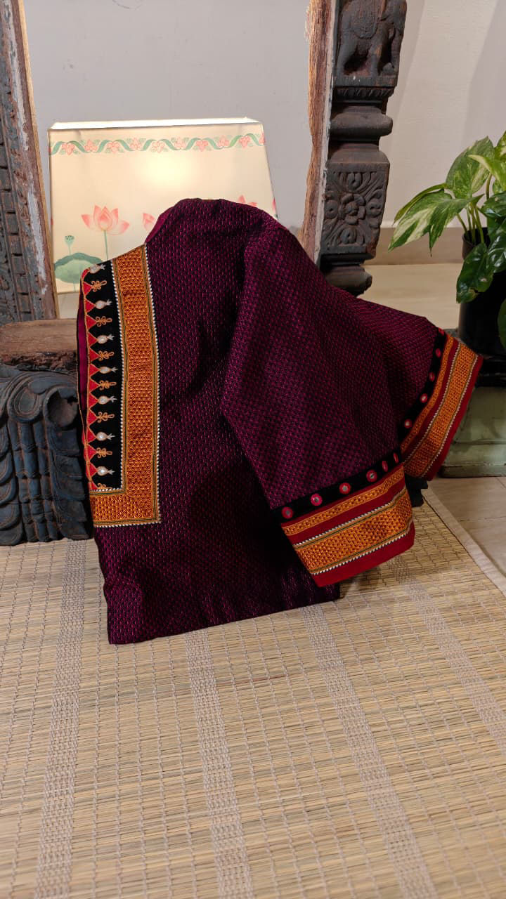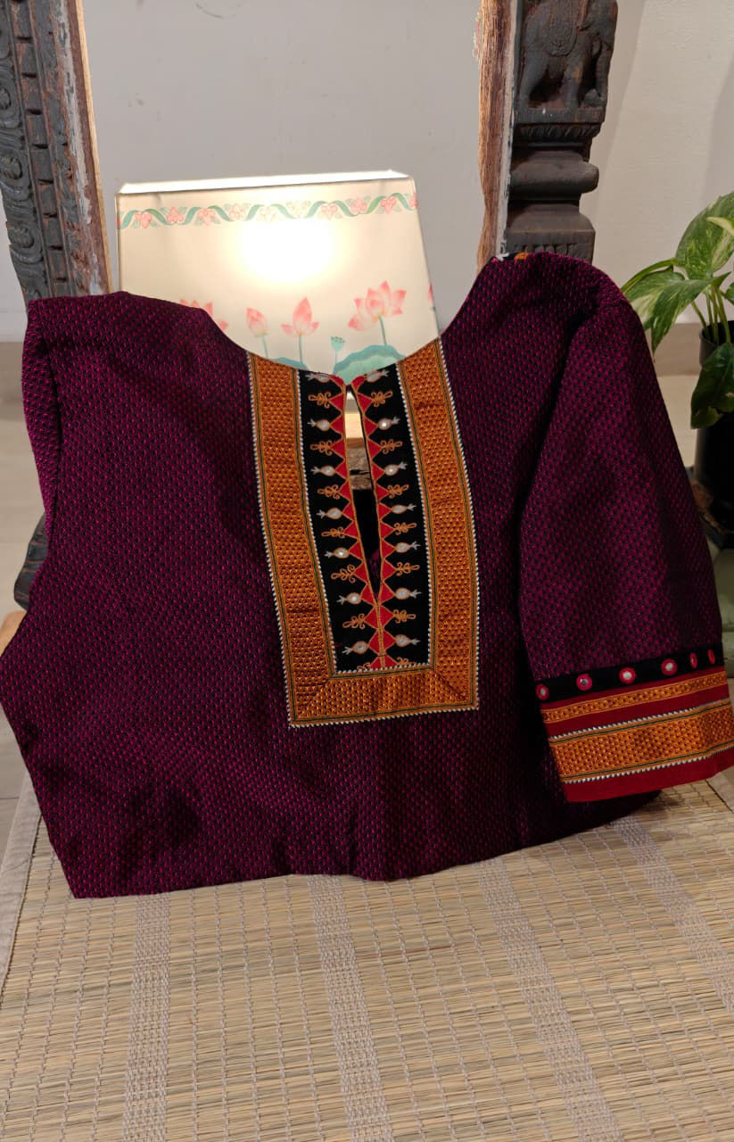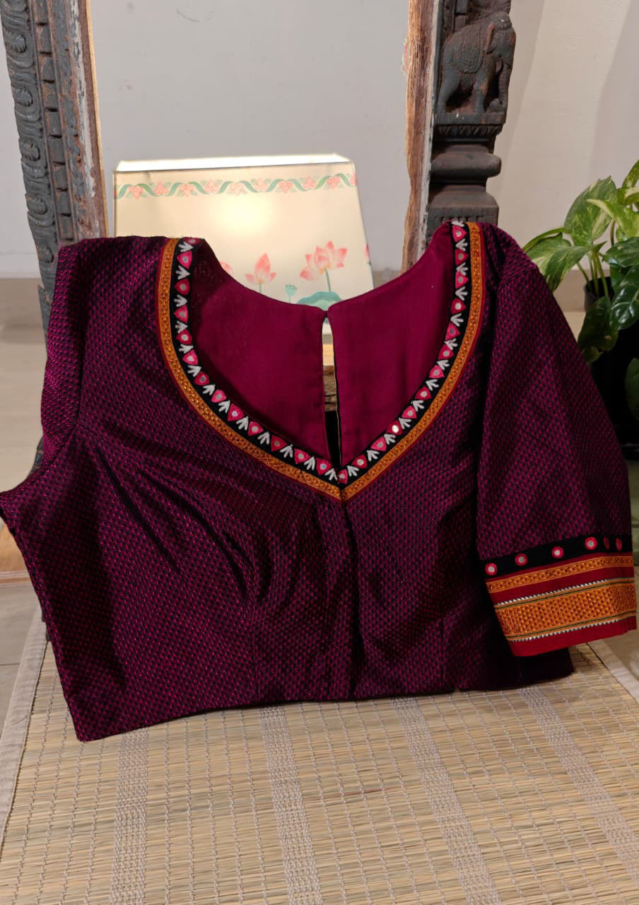 Our artisans creatively hand embroider, hand paint and hand print the blouses that come to you from the design house of SVASA. We use hand woven fabric extensively. You may notice very minute, almost insignificant flaws in the crafts since they are all handmade. We urge our patrons to overlook a few human errors that may have occurred in the process. Our aspirations are towards an empowered society, focusing on keeping traditional needlecraft alive for a long time to come.