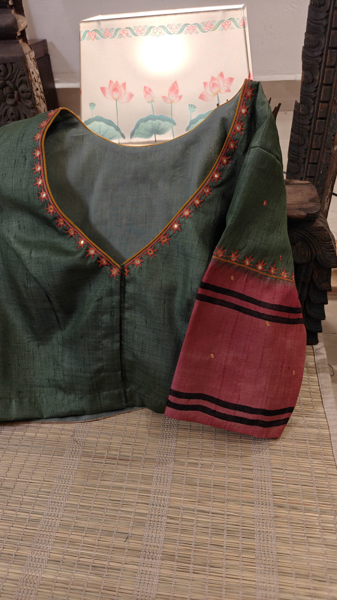 Our artisans creatively hand embroider, hand paint and hand print the blouses that come to you from the design house of SVASA. We use hand woven fabric extensively. You may notice very minute, almost insignificant flaws in the crafts since they are all handmade. We urge our patrons to overlook a few human errors that may have occurred in the process. Our aspirations are towards an empowered society, focusing on keeping traditional needlecraft alive for a long time to come.
