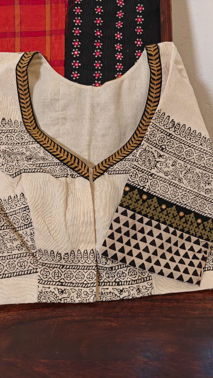 Our artisans creatively hand embroider, hand paint and hand print the blouses that come to you from the design house of SVASA. We use hand woven fabric extensively. You may notice very minute, almost insignificant flaws in the crafts since they are all handmade. We urge our patrons to overlook a few human errors that may have occurred in the process. Our aspirations are towards an empowered society, focusing on keeping traditional needlecraft alive for a long time to come.