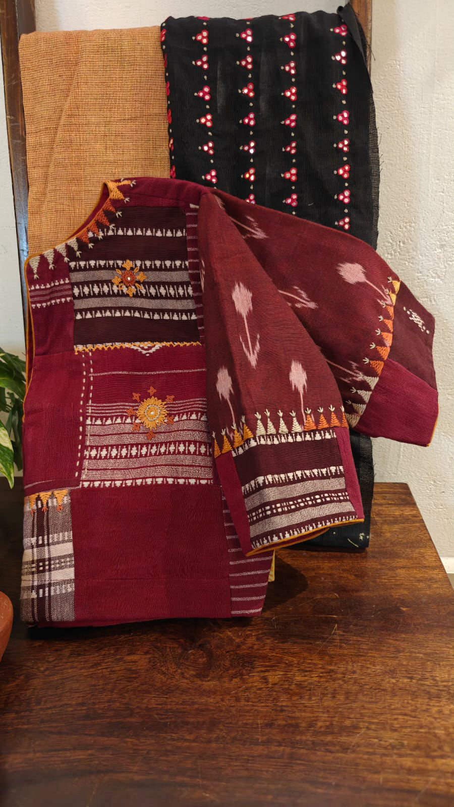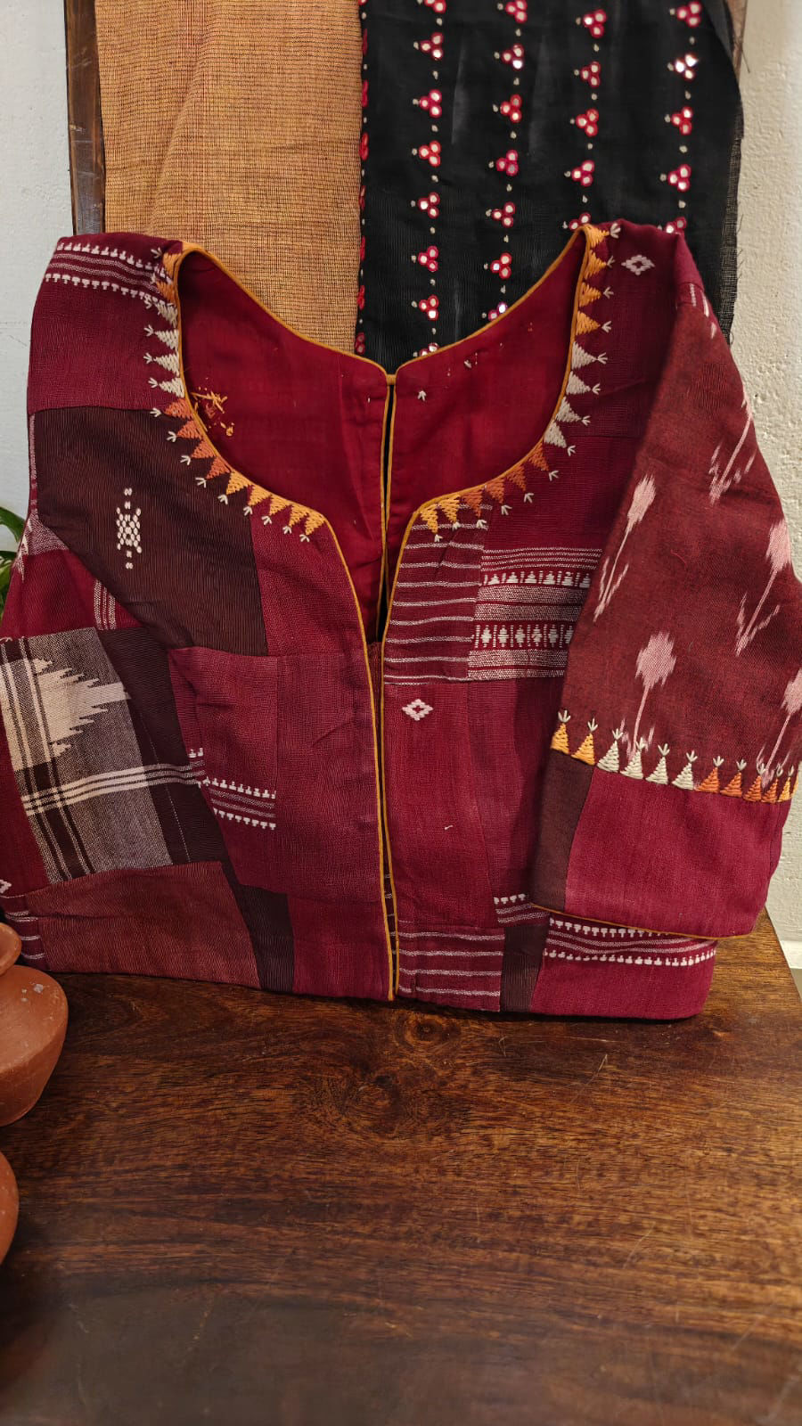 Patches of Kotpad weaves in warm brown and burgundy, carefully sewn together. A story of sustainability, revival, and timeless craft. A Svasa classic that celebrates the beauty of handmade. 🪡🌿