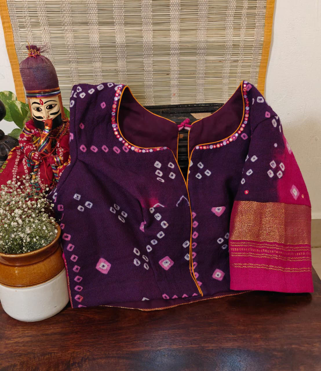 A play of purple and pink bandhani brought alive with tribal embroidery in vibrant hues. A burst of color, a piece of heritage โ€” handcrafted with love at Svasa. ๐Ÿชกโœจ๐ŸŒธ