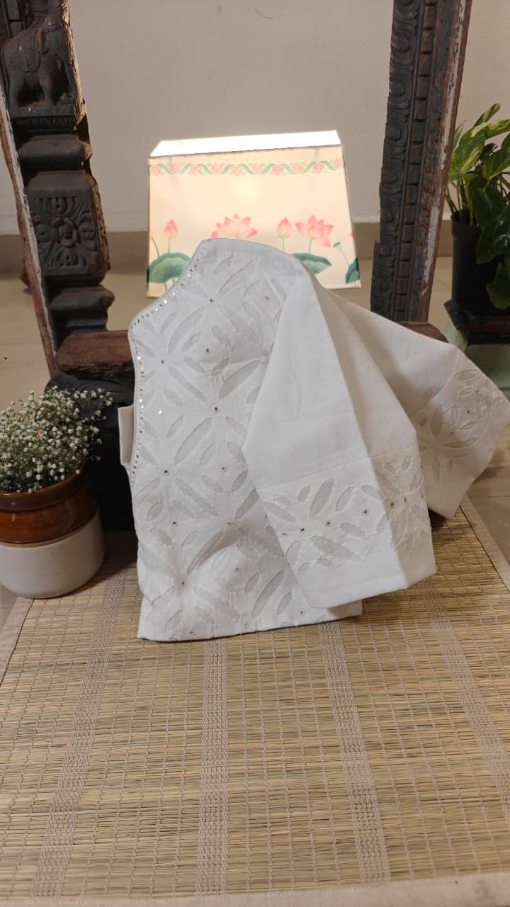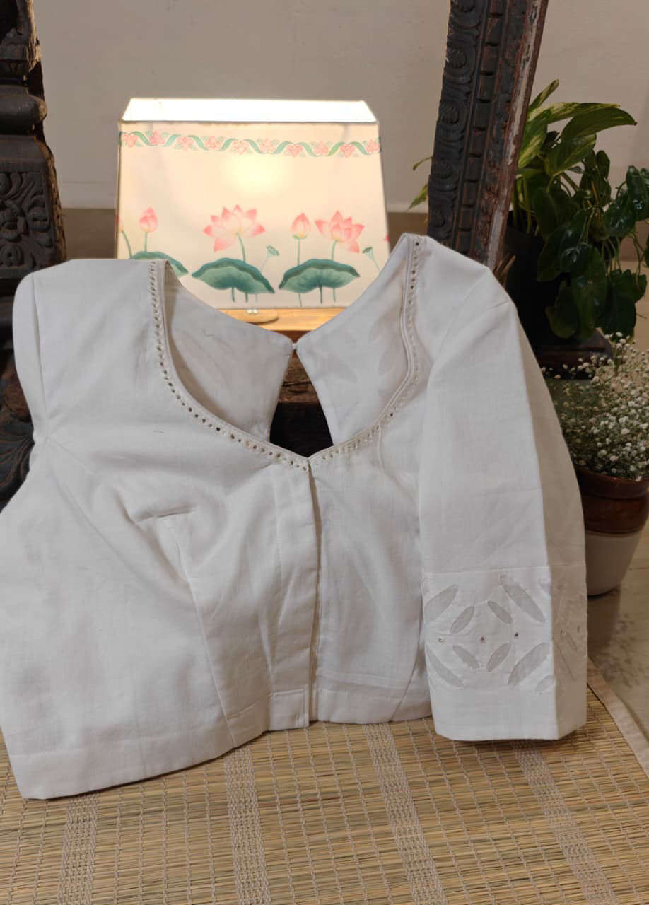 A pure ivory cotton blouse with delicate ivory appliquΓ©, studded with mirrors. A simple, classic creation that never goes out of style. 🌿πŸͺ‘
