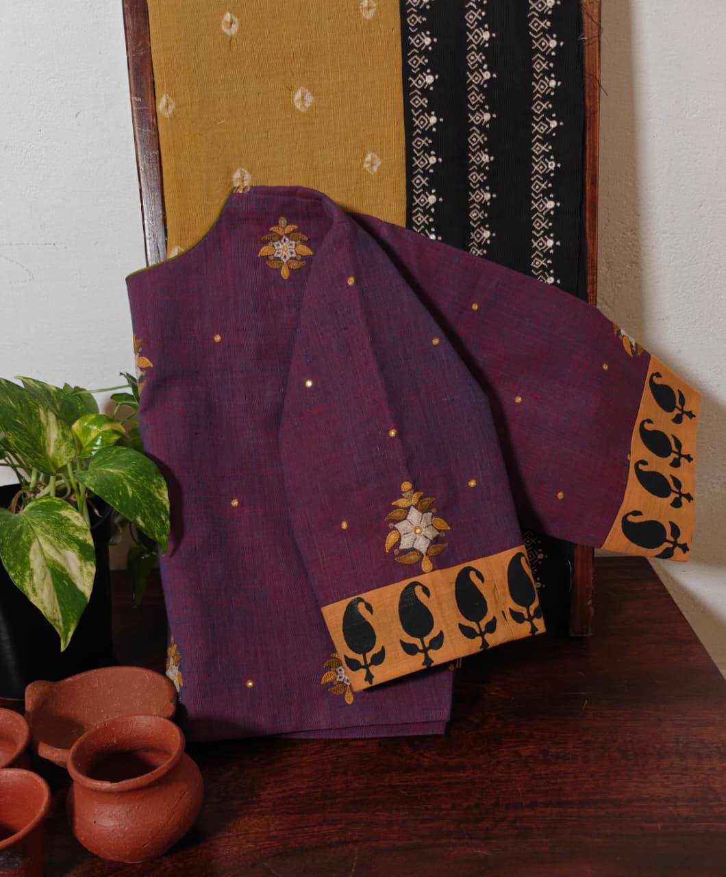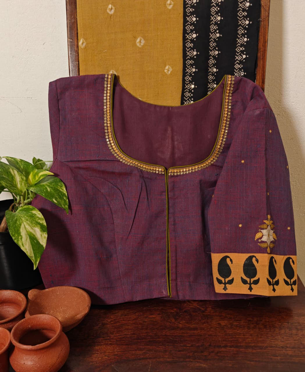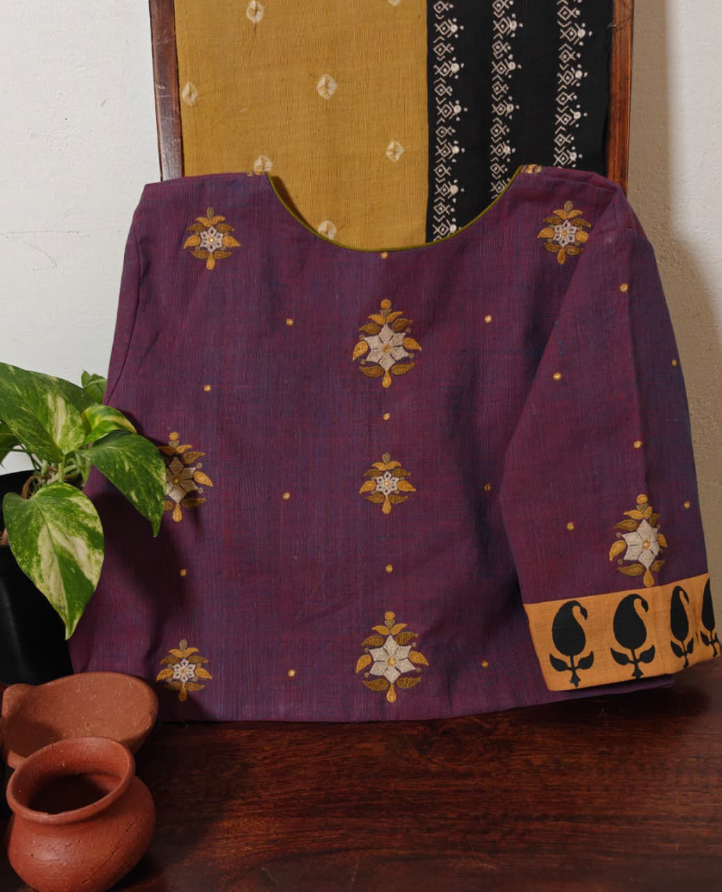 Our artisans creatively hand embroider, hand paint and hand print the blouses that come to you from the design house of SVASA. We use hand woven fabric extensively. You may notice very minute, almost insignificant flaws in the crafts since they are all handmade. We urge our patrons to overlook a few human errors that may have occurred in the process. Our aspirations are towards an empowered society, focusing on keeping traditional needlecraft alive for a long time to come.