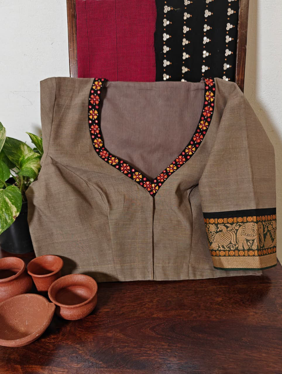 Our artisans creatively hand embroider, hand paint and hand print the blouses that come to you from the design house of SVASA. We use hand woven fabric extensively. You may notice very minute, almost insignificant flaws in the crafts since they are all handmade. We urge our patrons to overlook a few human errors that may have occurred in the process. Our aspirations are towards an empowered society, focusing on keeping traditional needlecraft alive for a long time to come.