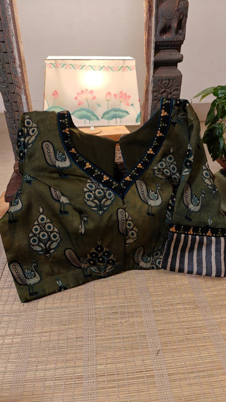 Our artisans creatively hand embroider, hand paint and hand print the blouses that come to you from the design house of SVASA. We use hand woven fabric extensively. You may notice very minute, almost insignificant flaws in the crafts since they are all handmade. We urge our patrons to overlook a few human errors that may have occurred in the process. Our aspirations are towards an empowered society, focusing on keeping traditional needlecraft alive for a long time to come.