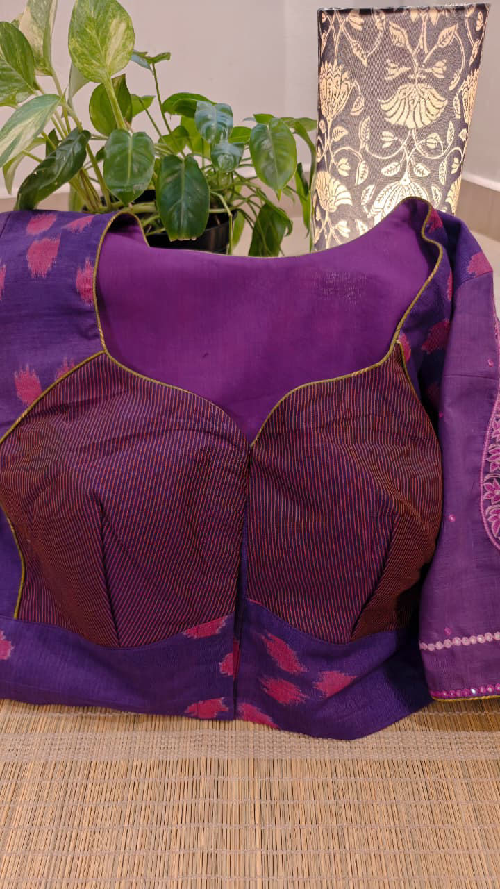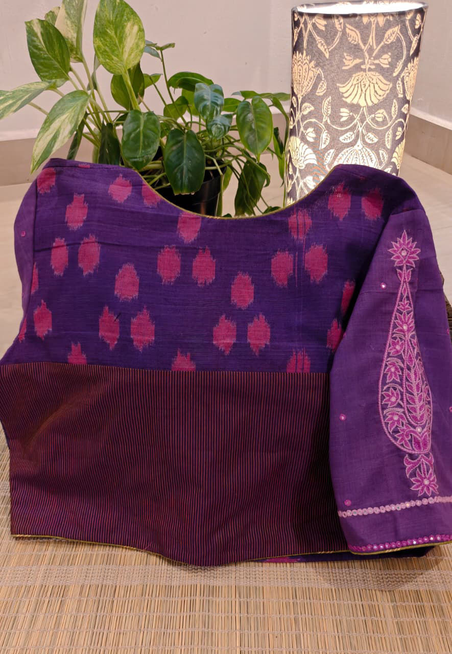 Shades of violet come together in a medley of handwoven textures. Finished with a classic motif embroidered on the sleeves – a timeless creation from our Blocks & Weaves line at Svasa. 🌿πŸͺ‘