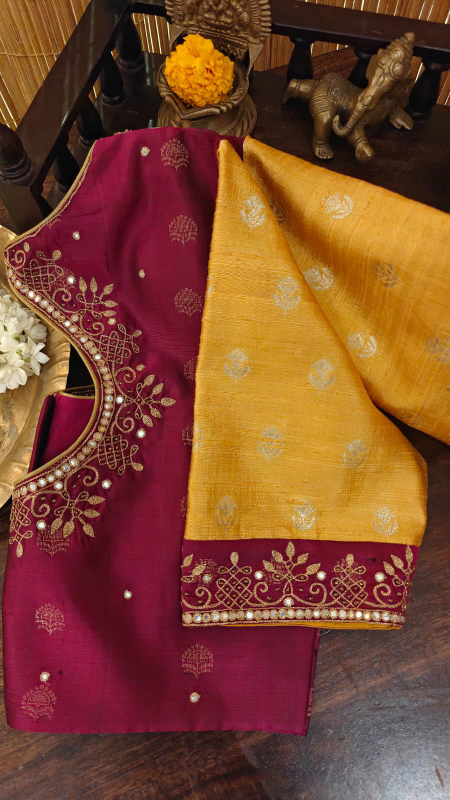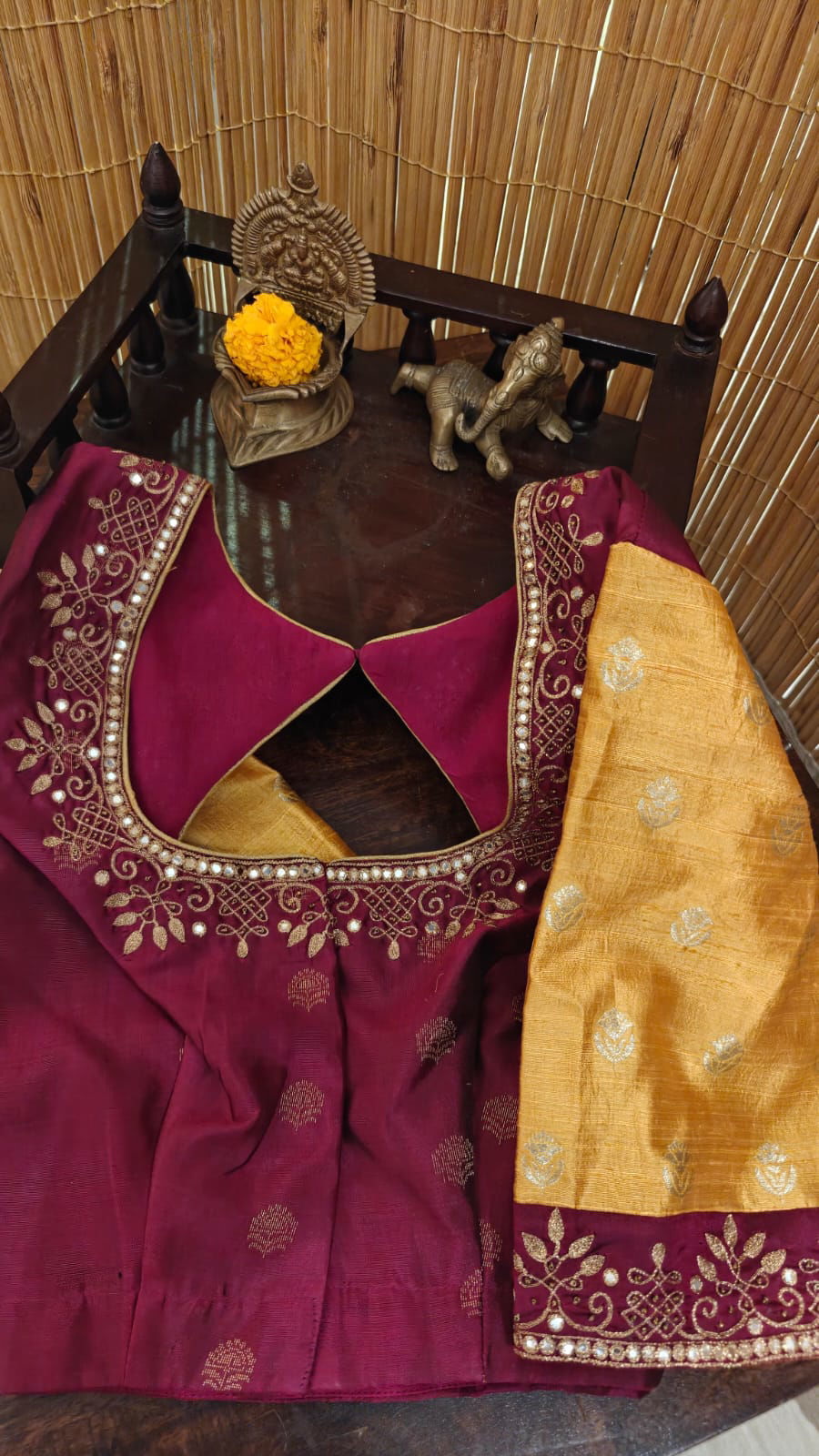 Our artisans creatively hand embroider, hand paint and hand print the blouses that come to you from the design house of SVASA. We use hand woven fabric extensively. You may notice very minute, almost insignificant flaws in the crafts since they are all handmade. We urge our patrons to overlook a few human errors that may have occurred in the process. Our aspirations are towards an empowered society, focusing on keeping traditional needlecraft alive for a long time to come.
