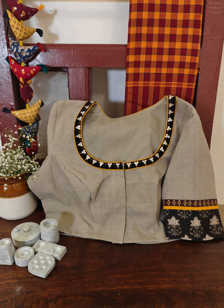 Our artisans creatively hand embroider, hand paint and hand print the blouses that come to you from the design house of SVASA. We use hand woven fabric extensively. You may notice very minute, almost insignificant flaws in the crafts since they are all handmade. We urge our patrons to overlook a few human errors that may have occurred in the process. Our aspirations are towards an empowered society, focusing on keeping traditional needlecraft alive for a long time to come.