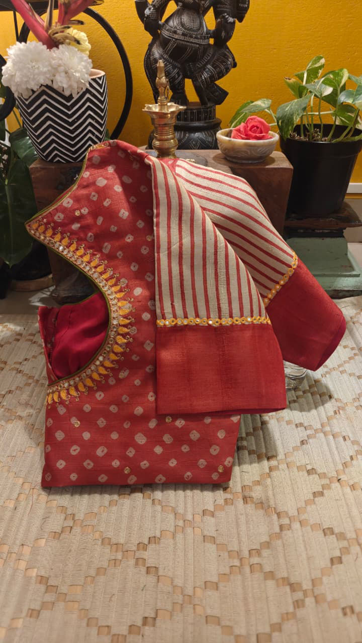 Bandhani Tussar with Vintage Embroidery