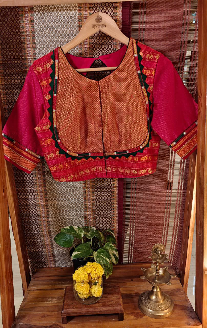 Our artisans creatively hand embroider, hand paint and hand print the blouses that come to you from the design house of SVASA. We use hand woven fabric extensively. You may notice very minute, almost insignificant flaws in the crafts since they are all handmade. We urge our patrons to overlook a few human errors that may have occurred in the process. Our aspirations are towards an empowered society, focusing on keeping traditional needlecraft alive for a long time to come.