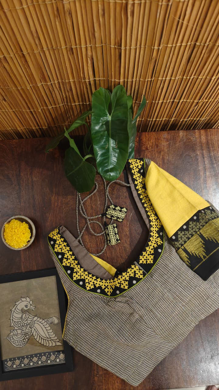 Our artisans creatively hand embroider, hand paint and hand print the blouses that come to you from the design house of SVASA. We use hand woven fabric extensively. You may notice very minute, almost insignificant flaws in the crafts since they are all handmade. We urge our patrons to overlook a few human errors that may have occurred in the process. Our aspirations are towards an empowered society, focusing on keeping traditional needlecraft alive for a long time to come.