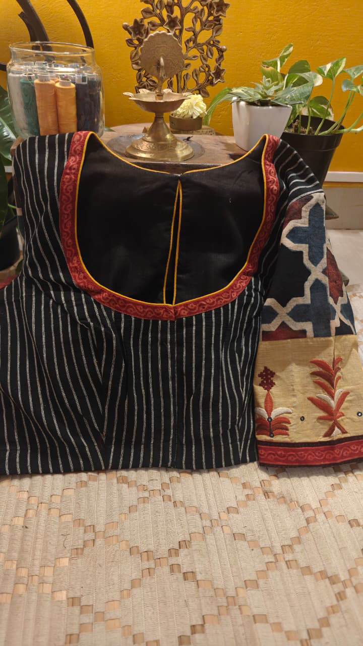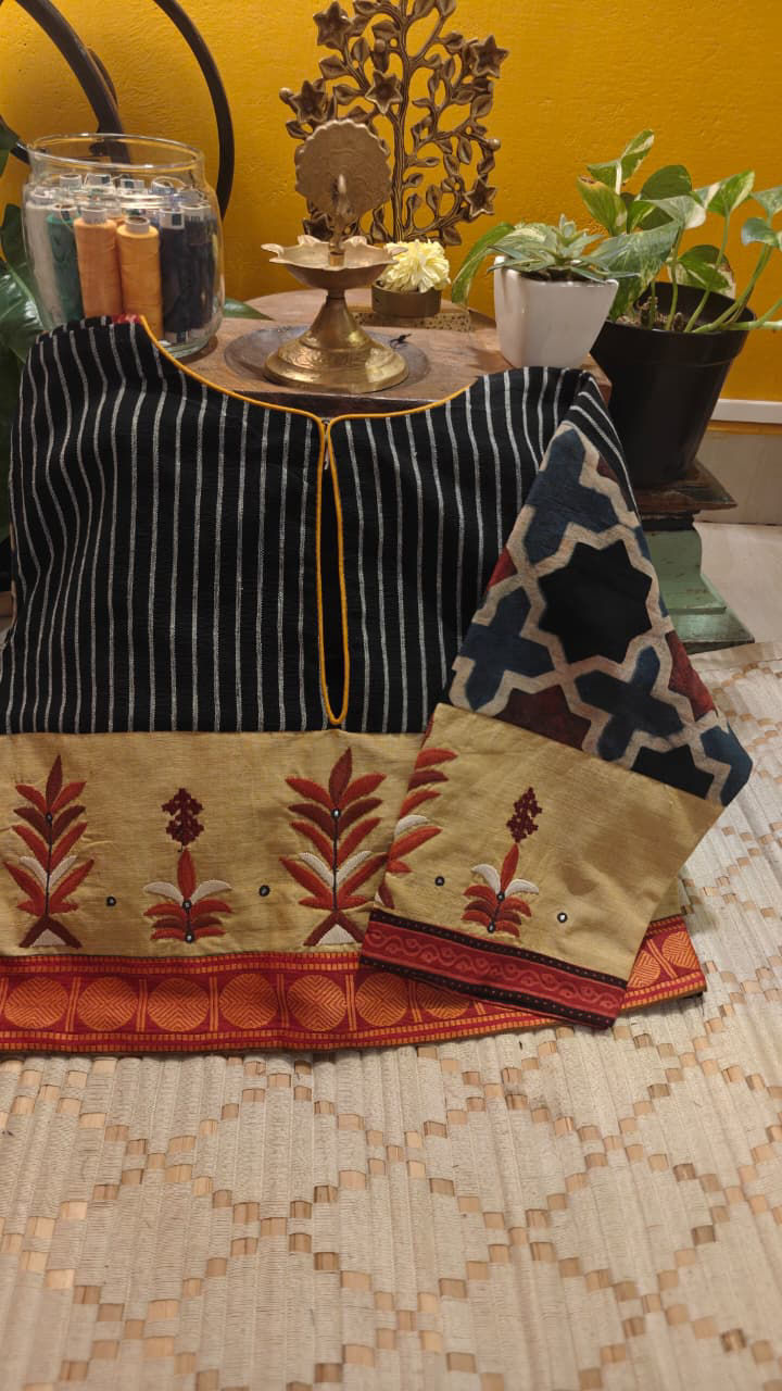 Our artisans creatively hand embroider, hand paint and hand print the blouses that come to you from the design house of SVASA. We use hand woven fabric extensively. You may notice very minute, almost insignificant flaws in the crafts since they are all handmade. We urge our patrons to overlook a few human errors that may have occurred in the process. Our aspirations are towards an empowered society, focusing on keeping traditional needlecraft alive for a long time to come.