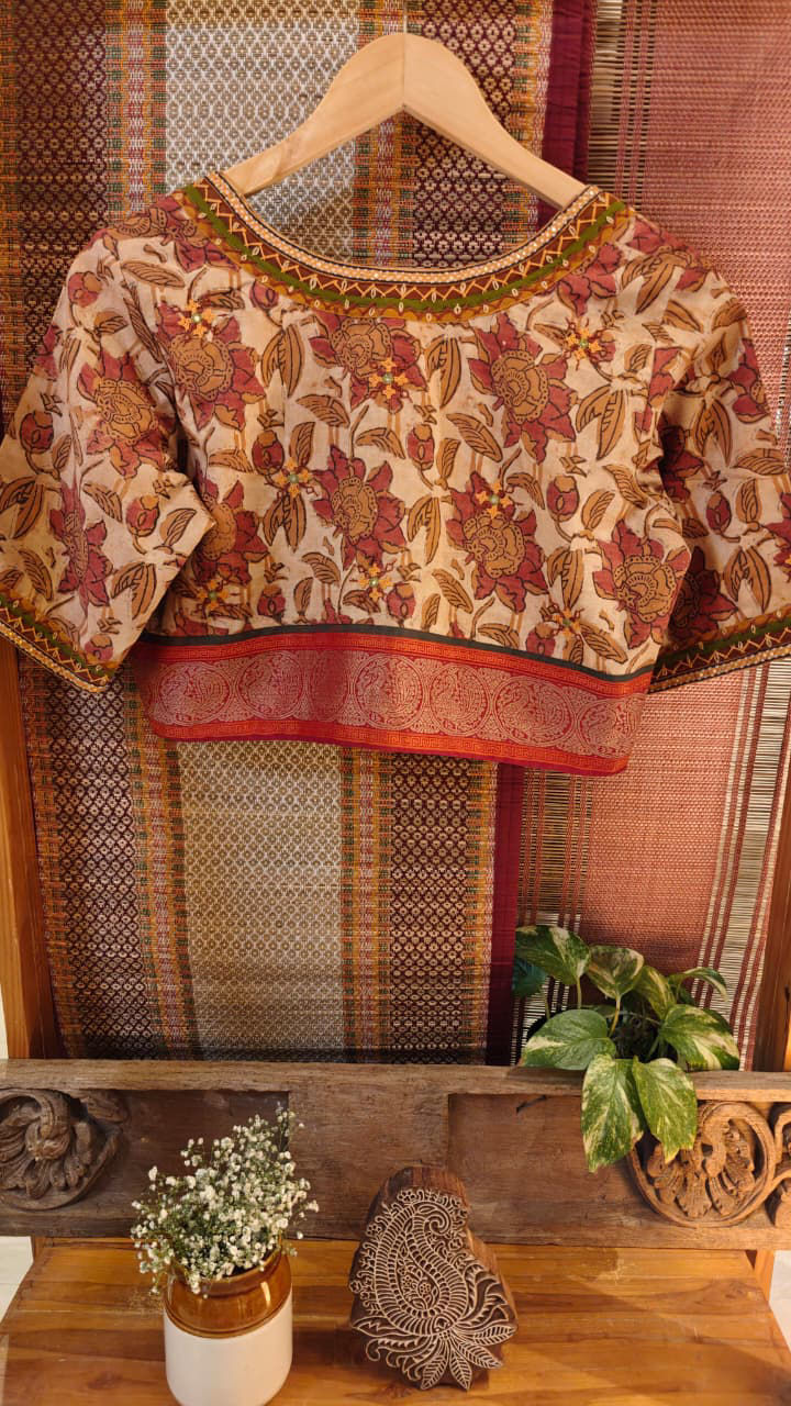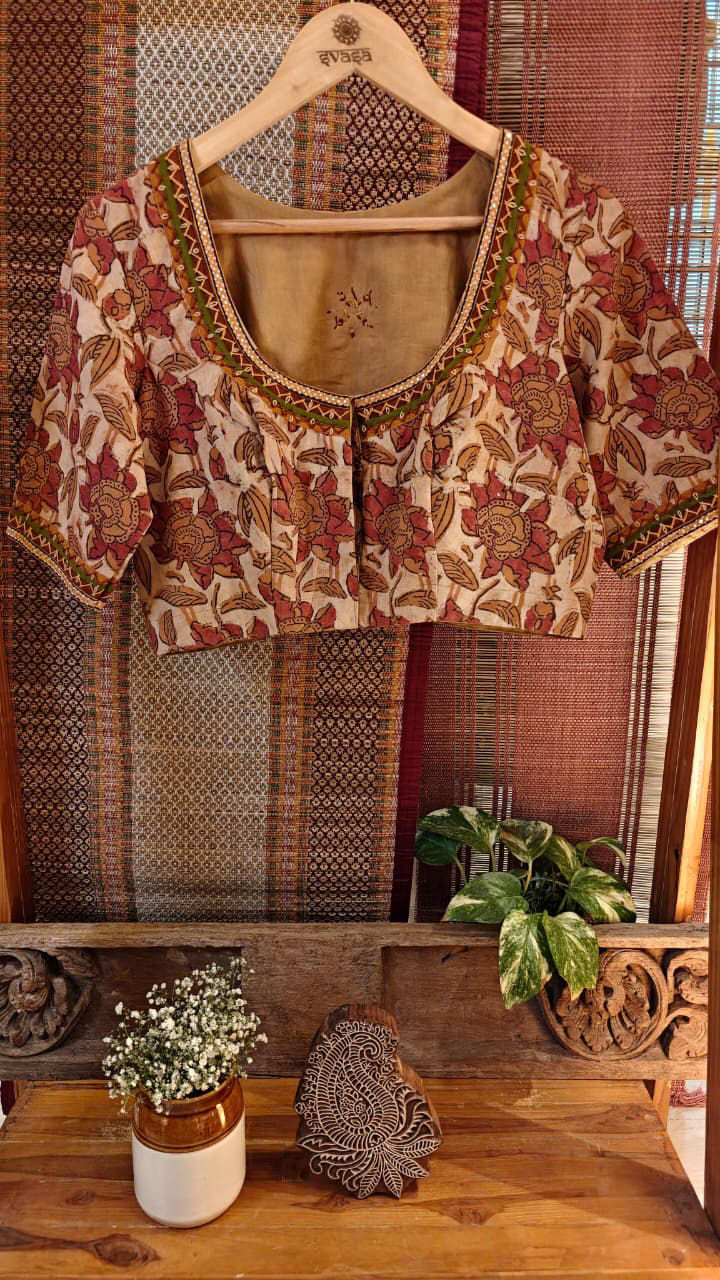 Our artisans creatively hand embroider, hand paint and hand print the blouses that come to you from the design house of SVASA. We use hand woven fabric extensively. You may notice very minute, almost insignificant flaws in the crafts since they are all handmade. We urge our patrons to overlook a few human errors that may have occurred in the process. Our aspirations are towards an empowered society, focusing on keeping traditional needlecraft alive for a long time to come.