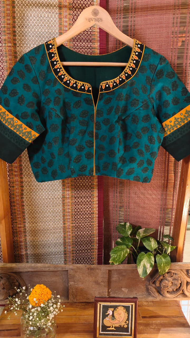 Our artisans creatively hand embroider, hand paint and hand print the blouses that come to you from the design house of SVASA. We use hand woven fabric extensively. You may notice very minute, almost insignificant flaws in the crafts since they are all handmade. We urge our patrons to overlook a few human errors that may have occurred in the process. Our aspirations are towards an empowered society, focusing on keeping traditional needlecraft alive for a long time to come.