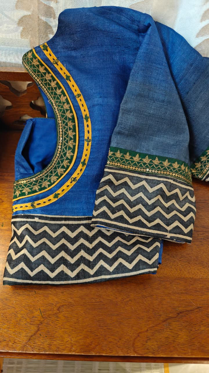 Our artisans creatively hand embroider, hand paint and hand print the blouses that come to you from the design house of SVASA. We use hand woven fabric extensively. You may notice very minute, almost insignificant flaws in the crafts since they are all handmade. We urge our patrons to overlook a few human errors that may have occurred in the process. Our aspirations are towards an empowered society, focusing on keeping traditional needlecraft alive for a long time to come.