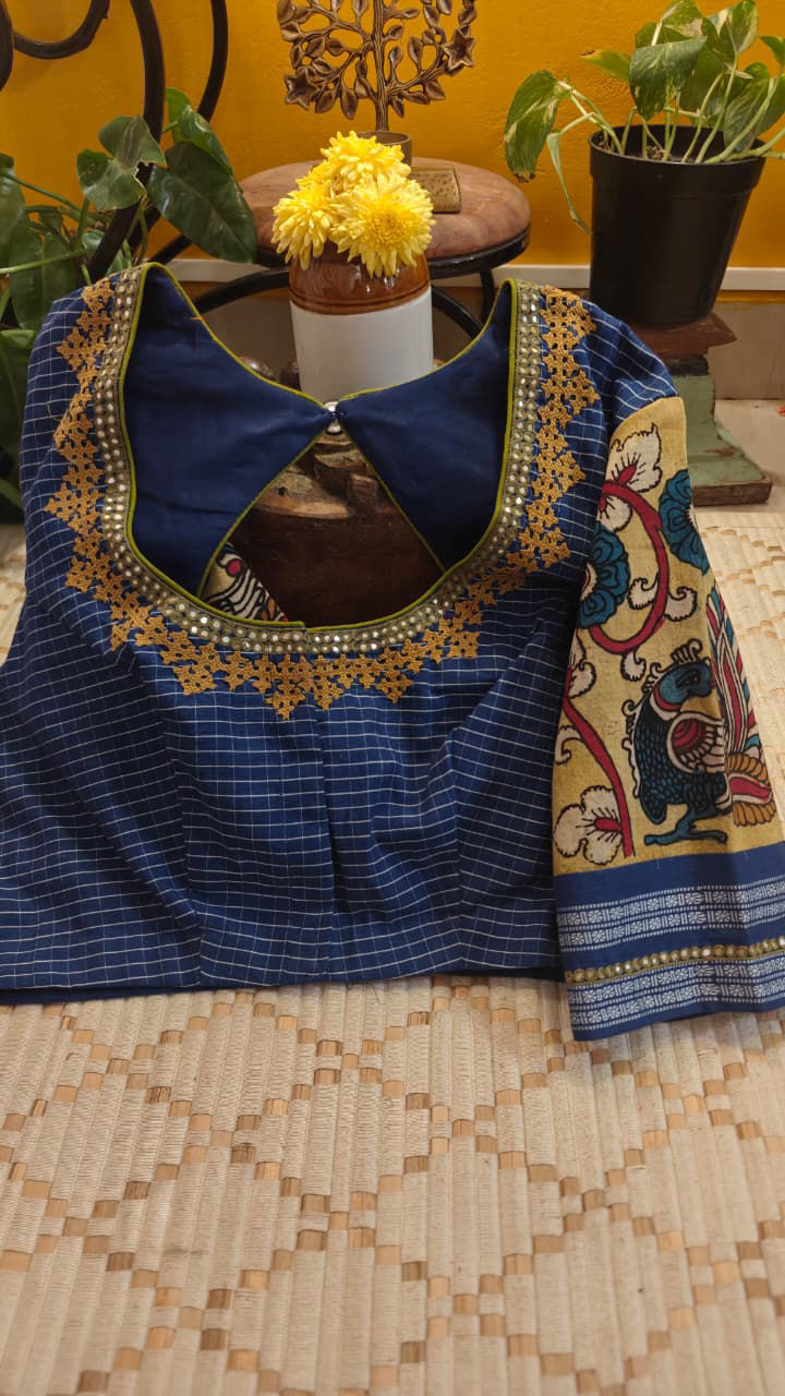 Our artisans creatively hand embroider, hand paint and hand print the blouses that come to you from the design house of SVASA. We use hand woven fabric extensively. You may notice very minute, almost insignificant flaws in the crafts since they are all handmade. We urge our patrons to overlook a few human errors that may have occurred in the process. Our aspirations are towards an empowered society, focusing on keeping traditional needlecraft alive for a long time to come.