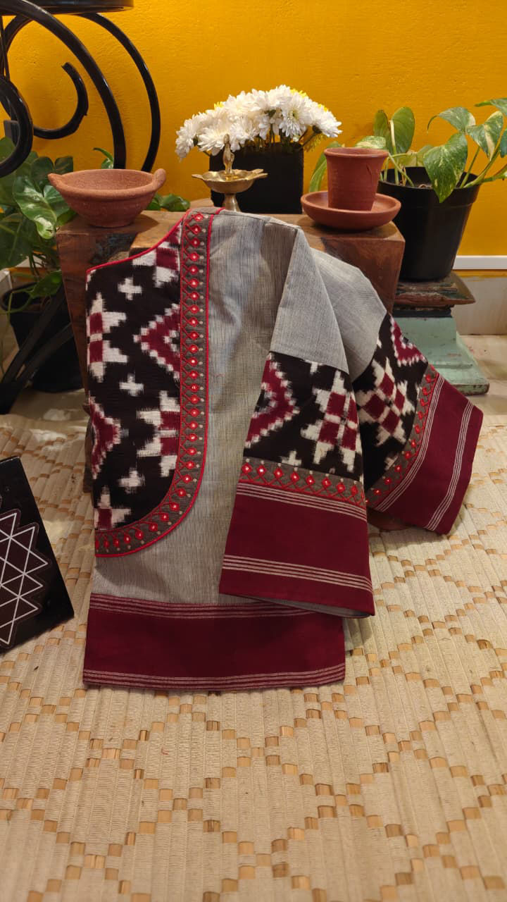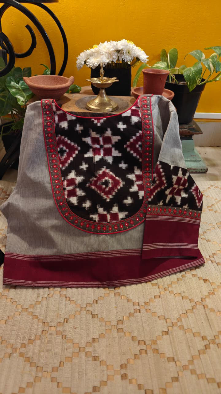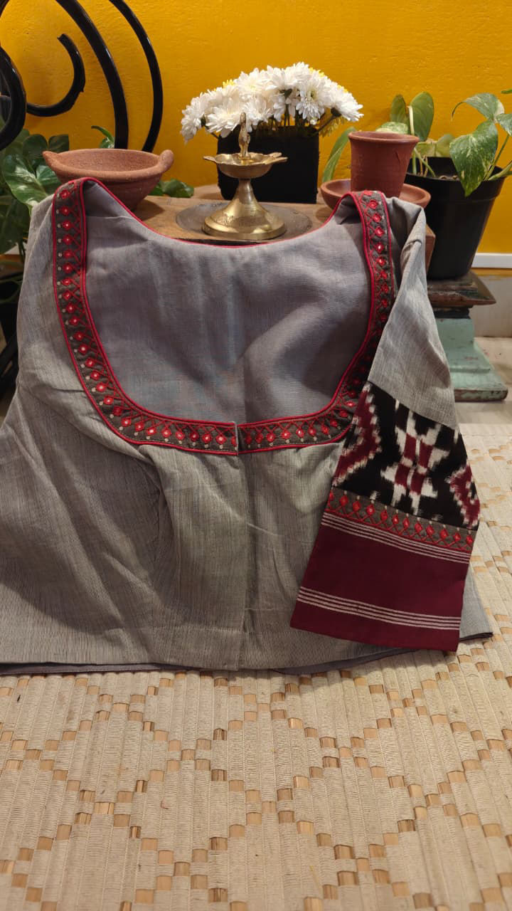 Our artisans creatively hand embroider, hand paint and hand print the blouses that come to you from the design house of SVASA. We use hand woven fabric extensively. You may notice very minute, almost insignificant flaws in the crafts since they are all handmade. We urge our patrons to overlook a few human errors that may have occurred in the process. Our aspirations are towards an empowered society, focusing on keeping traditional needlecraft alive for a long time to come.