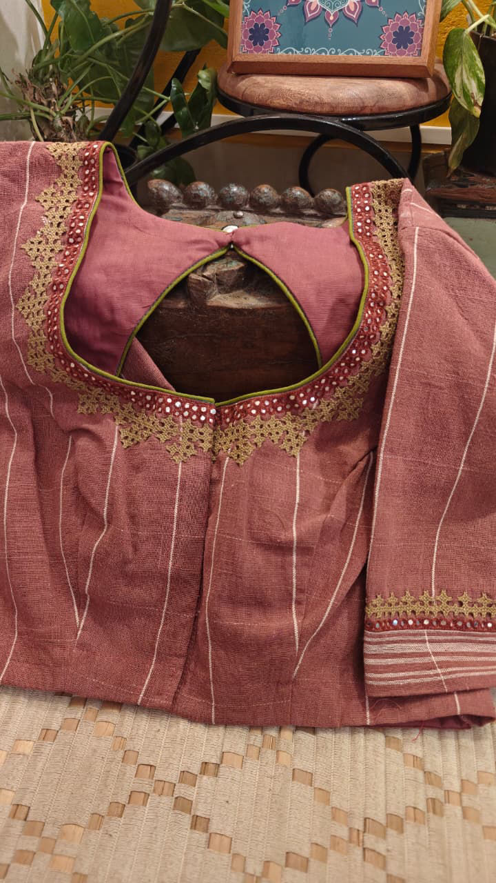 Our artisans creatively hand embroider, hand paint and hand print the blouses that come to you from the design house of SVASA. We use hand woven fabric extensively. You may notice very minute, almost insignificant flaws in the crafts since they are all handmade. We urge our patrons to overlook a few human errors that may have occurred in the process. Our aspirations are towards an empowered society, focusing on keeping traditional needlecraft alive for a long time to come.