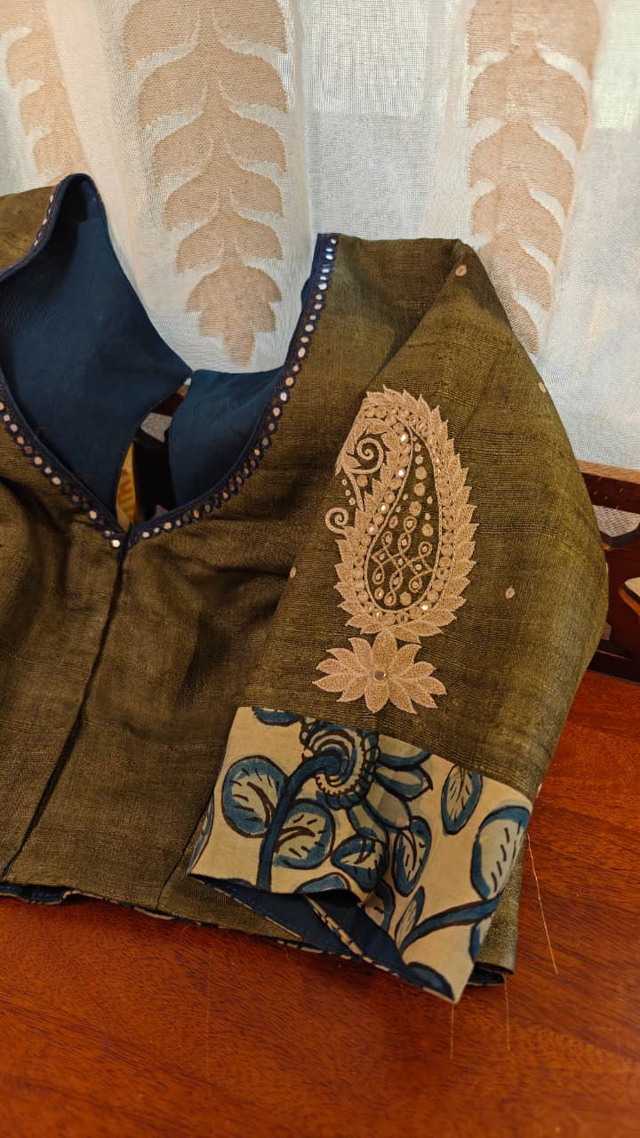 Our artisans creatively hand embroider, hand paint and hand print the blouses that come to you from the design house of SVASA. We use hand woven fabric extensively. You may notice very minute, almost insignificant flaws in the crafts since they are all handmade. We urge our patrons to overlook a few human errors that may have occurred in the process. Our aspirations are towards an empowered society, focusing on keeping traditional needlecraft alive for a long time to come.