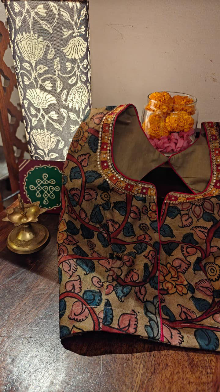 Our artisans creatively hand embroider, hand paint and hand print the blouses that come to you from the design house of SVASA. We use hand woven fabric extensively. You may notice very minute, almost insignificant flaws in the crafts since they are all handmade. We urge our patrons to overlook a few human errors that may have occurred in the process. Our aspirations are towards an empowered society, focusing on keeping traditional needlecraft alive for a long time to come.