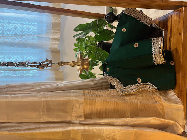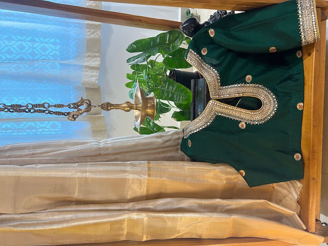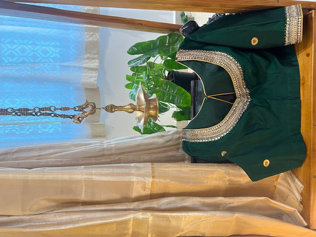 Step into the festival vibes with this forest green Chanderi blouse, adorned with shimmering gold and silver embroidery around the neck. A perfect blend of tradition and style for your festive wardrobe! 🌟🪔
