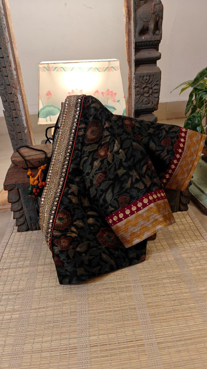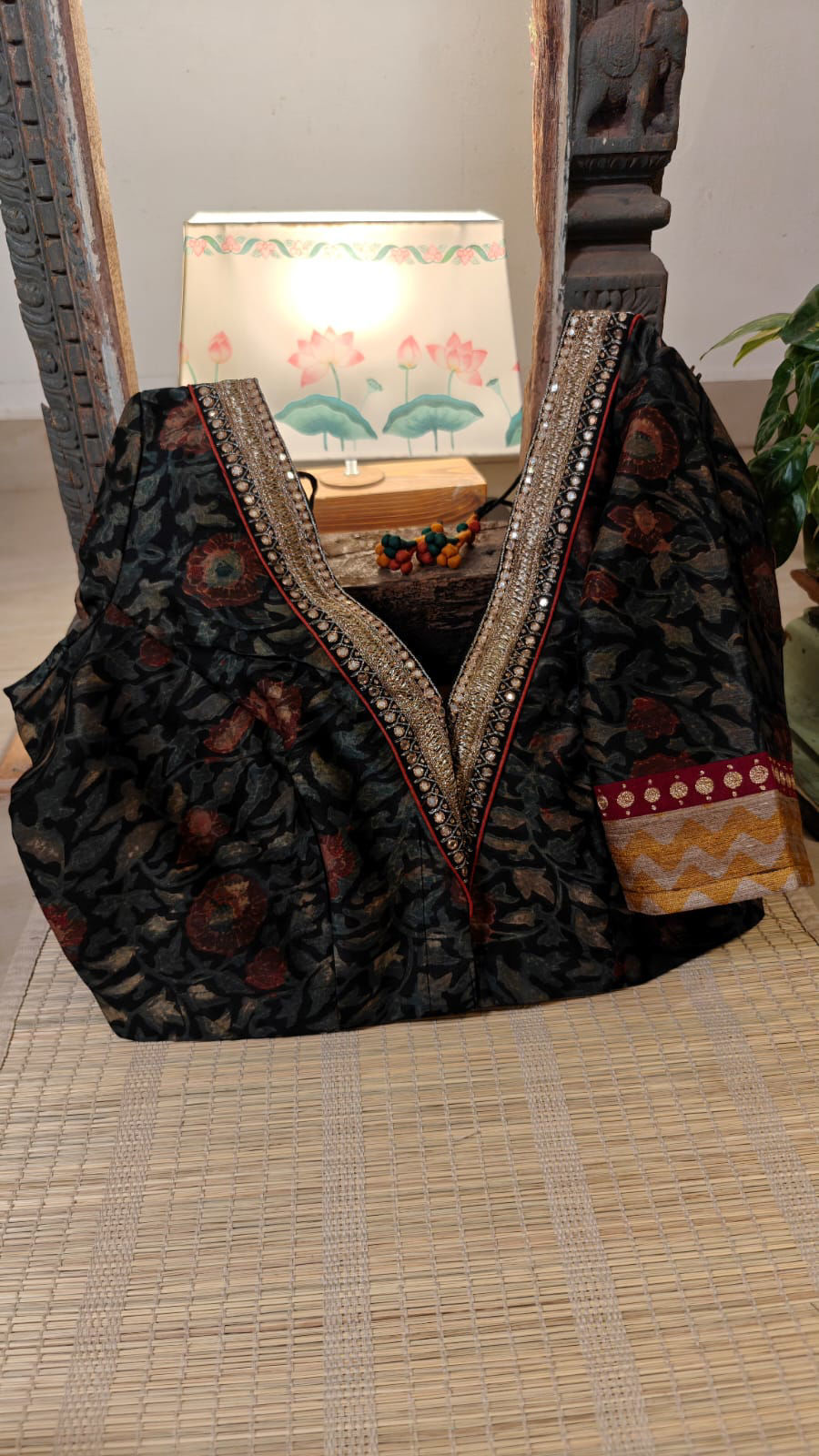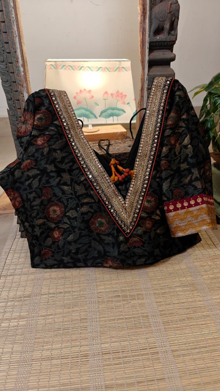 Our artisans creatively hand embroider, hand paint and hand print the blouses that come to you from the design house of SVASA. We use hand woven fabric extensively. You may notice very minute, almost insignificant flaws in the crafts since they are all handmade. We urge our patrons to overlook a few human errors that may have occurred in the process. Our aspirations are towards an empowered society, focusing on keeping traditional needlecraft alive for a long time to come.
