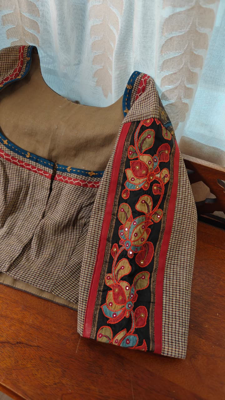 Our artisans creatively hand embroider, hand paint and hand print the blouses that come to you from the design house of SVASA. We use hand woven fabric extensively. You may notice very minute, almost insignificant flaws in the crafts since they are all handmade. We urge our patrons to overlook a few human errors that may have occurred in the process. Our aspirations are towards an empowered society, focusing on keeping traditional needlecraft alive for a long time to come.