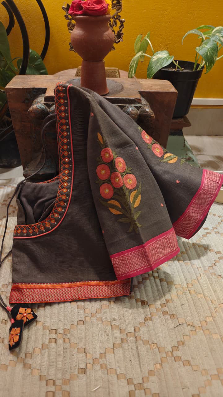 Our artisans creatively hand embroider, hand paint and hand print the blouses that come to you from the design house of SVASA. We use hand woven fabric extensively. You may notice very minute, almost insignificant flaws in the crafts since they are all handmade. We urge our patrons to overlook a few human errors that may have occurred in the process. Our aspirations are towards an empowered society, focusing on keeping traditional needlecraft alive for a long time to come.