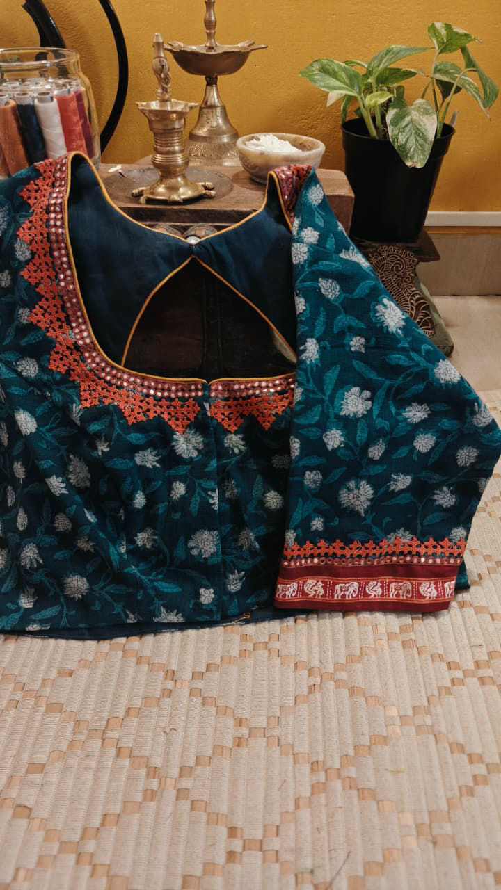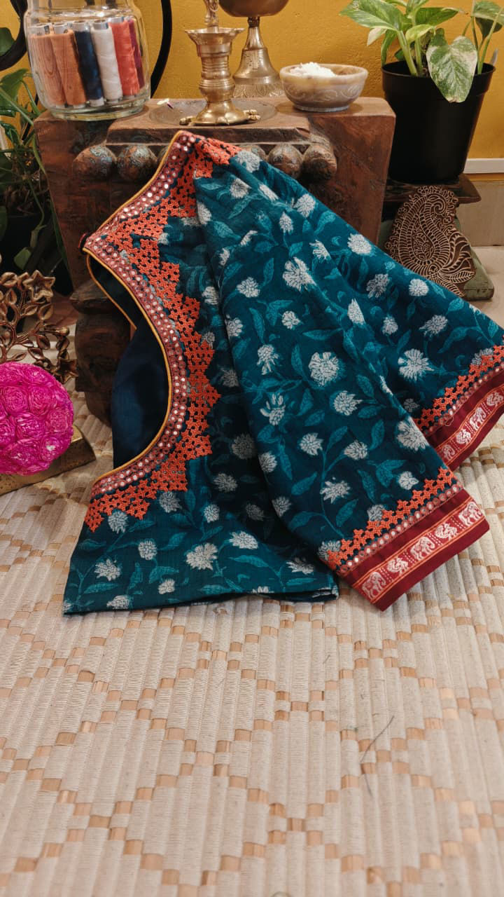Our artisans creatively hand embroider, hand paint and hand print the blouses that come to you from the design house of SVASA. We use hand woven fabric extensively. You may notice very minute, almost insignificant flaws in the crafts since they are all handmade. We urge our patrons to overlook a few human errors that may have occurred in the process. Our aspirations are towards an empowered society, focusing on keeping traditional needlecraft alive for a long time to come.