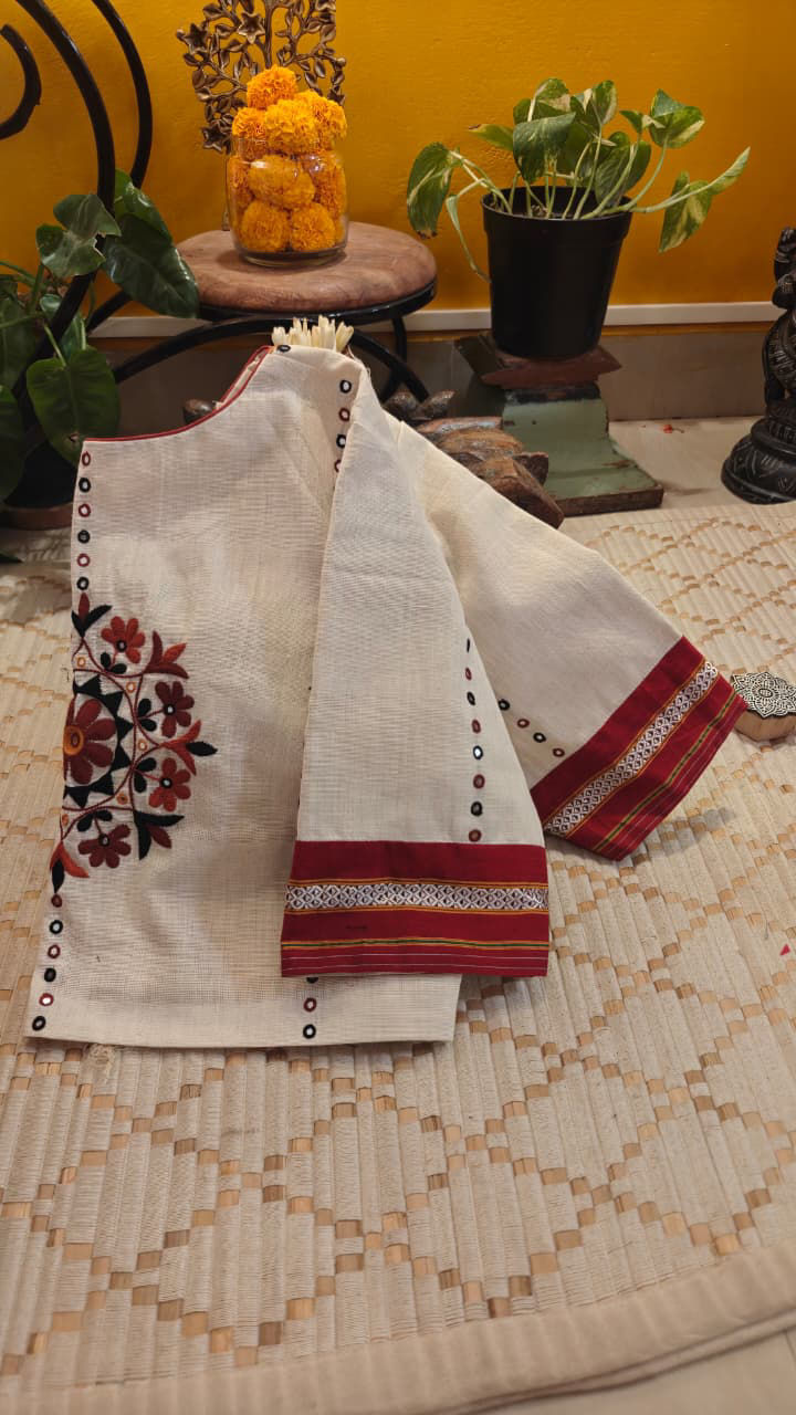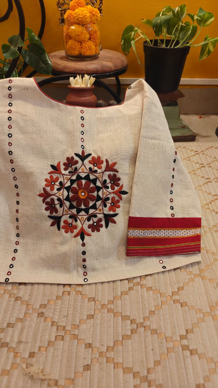 On a serene ivory canvas, tribes come alive in hues of the earth—ochre, rust, deep greens and muted browns—coming together in a single striking motif. Rooted in soil, shaped by stories, and carried through generations. A quiet celebration of heritage, where every colour feels grounded and every detail, deeply connected. 🪡✨