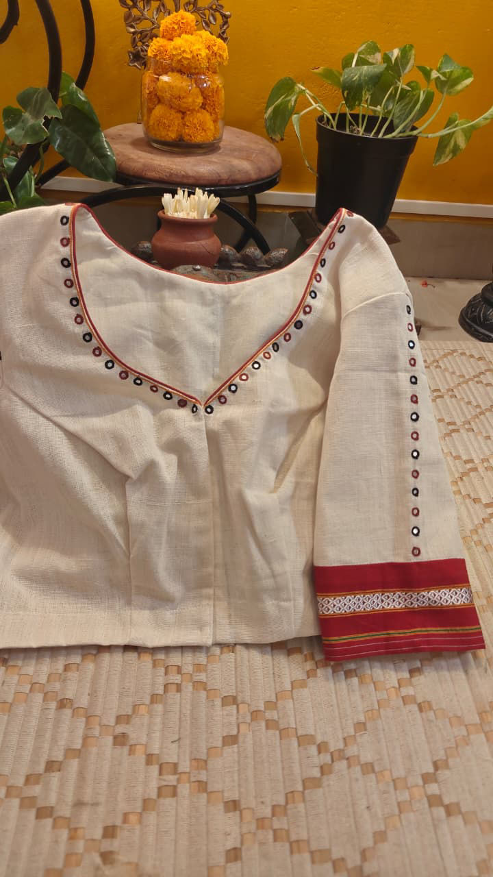 Our artisans creatively hand embroider, hand paint and hand print the blouses that come to you from the design house of SVASA. We use hand woven fabric extensively. You may notice very minute, almost insignificant flaws in the crafts since they are all handmade. We urge our patrons to overlook a few human errors that may have occurred in the process. Our aspirations are towards an empowered society, focusing on keeping traditional needlecraft alive for a long time to come.