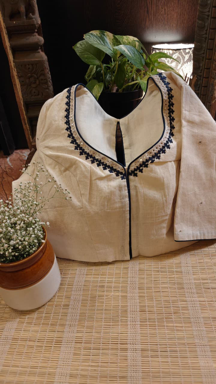Our artisans creatively hand embroider, hand paint and hand print the blouses that come to you from the design house of SVASA. We use hand woven fabric extensively. You may notice very minute, almost insignificant flaws in the crafts since they are all handmade. We urge our patrons to overlook a few human errors that may have occurred in the process. Our aspirations are towards an empowered society, focusing on keeping traditional needlecraft alive for a long time to come.