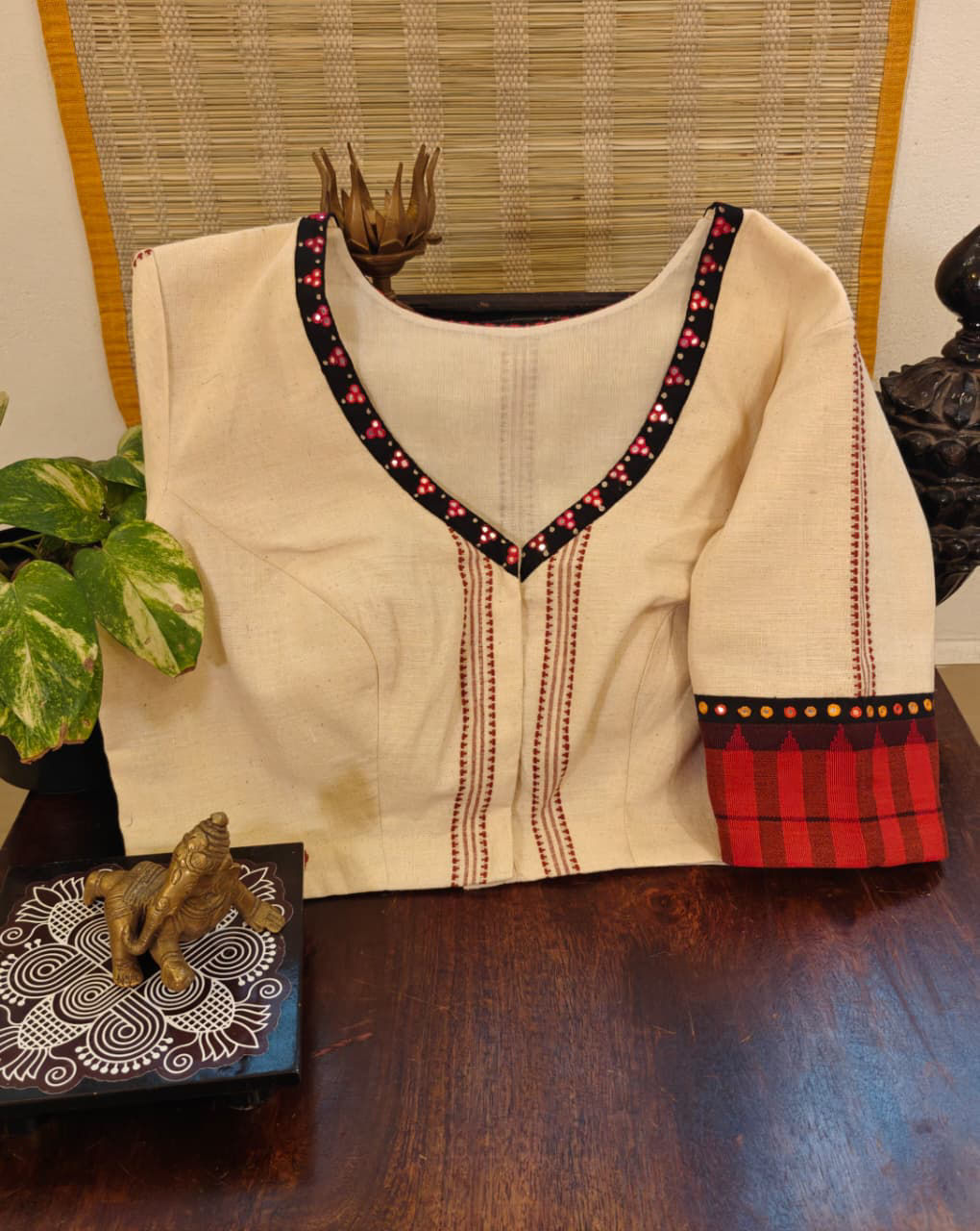 Our artisans creatively hand embroider, hand paint and hand print the blouses that come to you from the design house of SVASA. We use hand woven fabric extensively. You may notice very minute, almost insignificant flaws in the crafts since they are all handmade. We urge our patrons to overlook a few human errors that may have occurred in the process. Our aspirations are towards an empowered society, focusing on keeping traditional needlecraft alive for a long time to come.