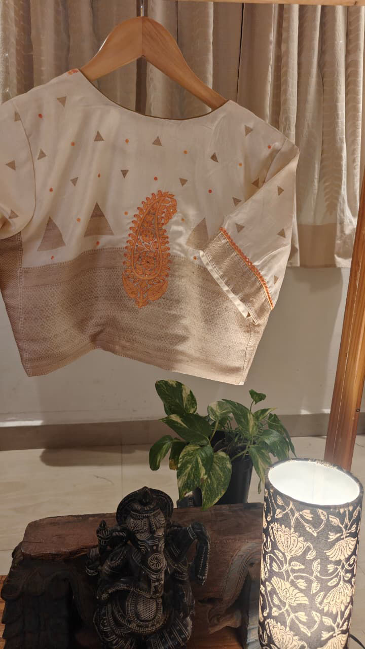 Our artisans creatively hand embroider, hand paint and hand print the blouses that come to you from the design house of SVASA. We use hand woven fabric extensively. You may notice very minute, almost insignificant flaws in the crafts since they are all handmade. We urge our patrons to overlook a few human errors that may have occurred in the process. Our aspirations are towards an empowered society, focusing on keeping traditional needlecraft alive for a long time to come.