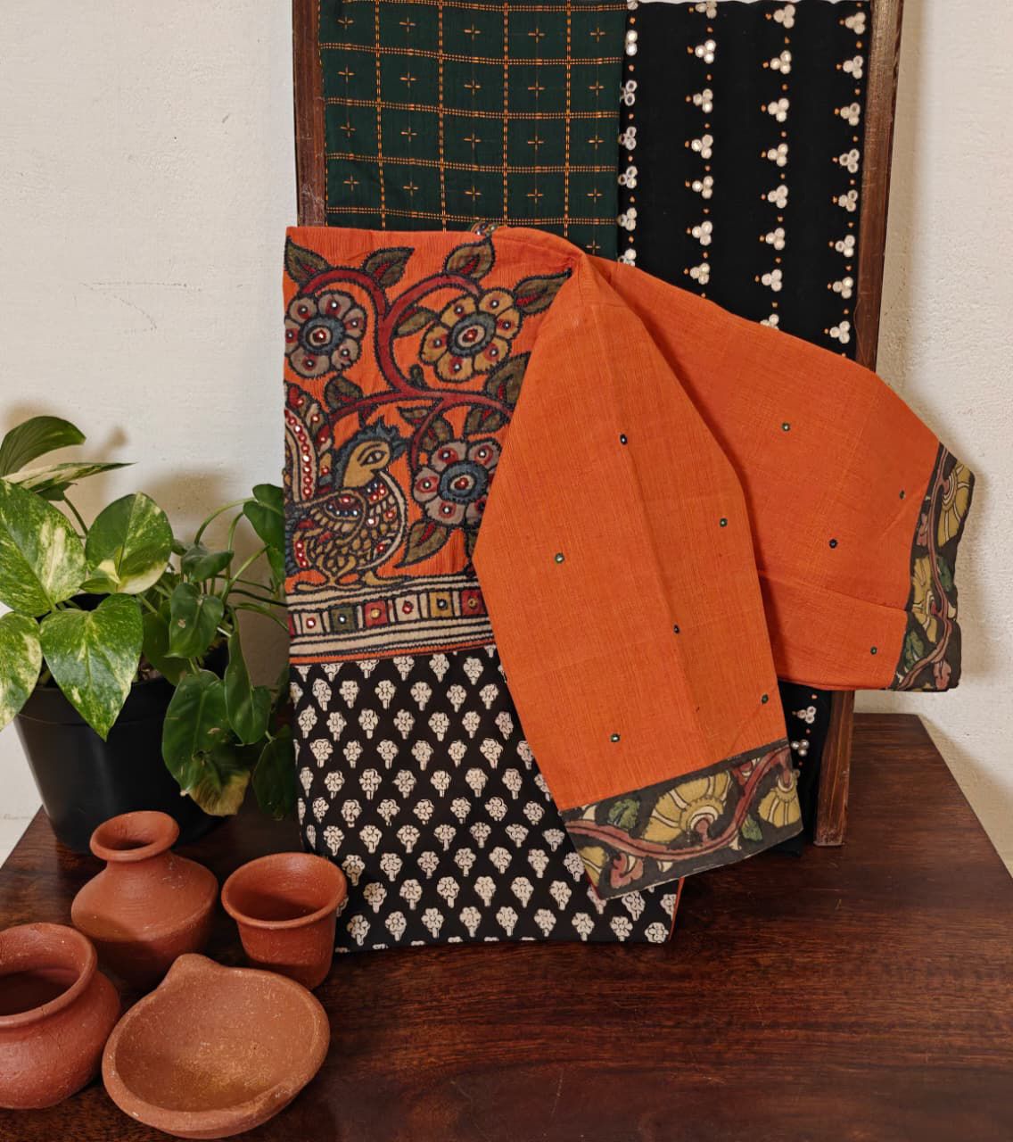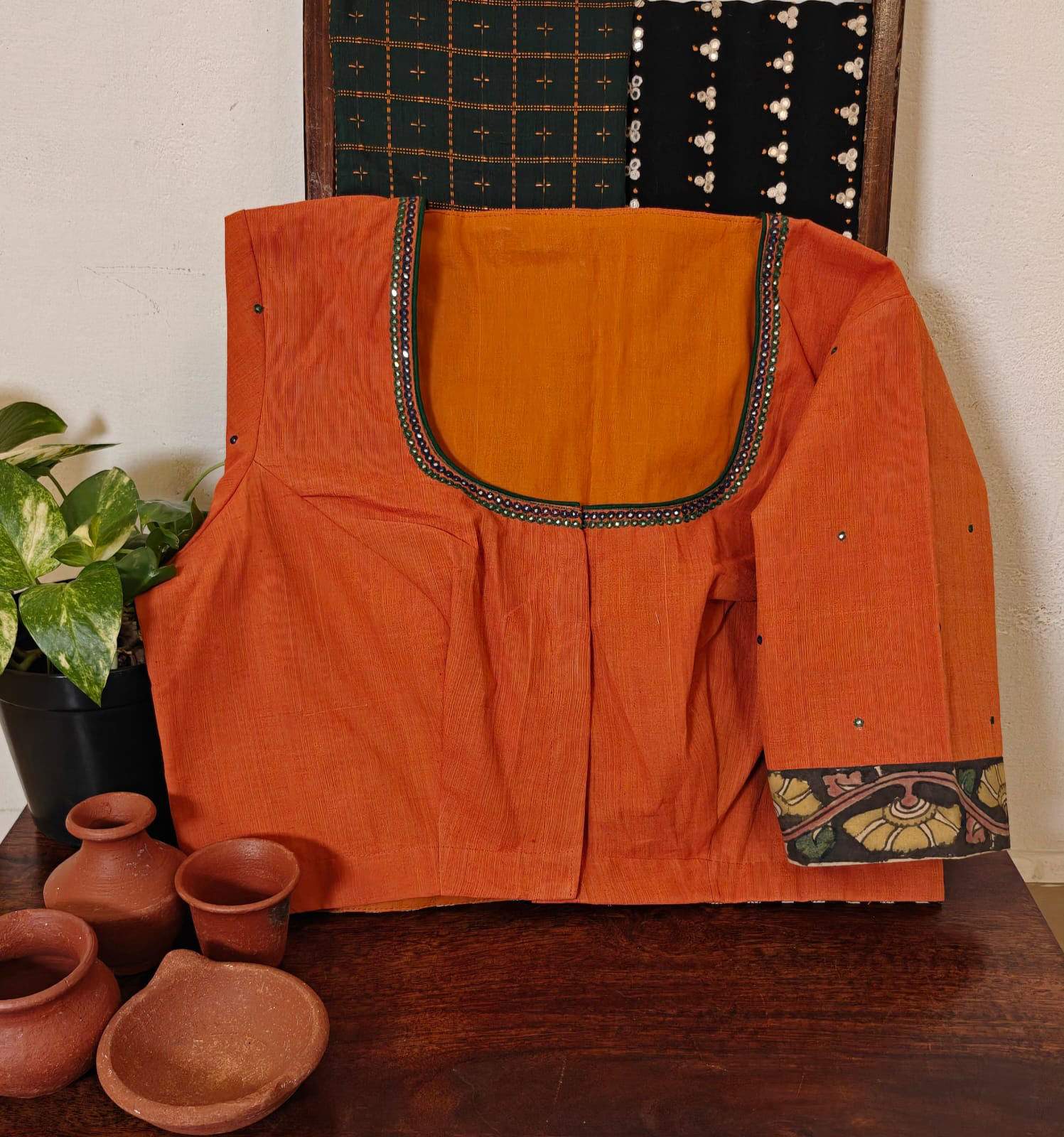 Our artisans creatively hand embroider, hand paint and hand print the blouses that come to you from the design house of SVASA. We use hand woven fabric extensively. You may notice very minute, almost insignificant flaws in the crafts since they are all handmade. We urge our patrons to overlook a few human errors that may have occurred in the process. Our aspirations are towards an empowered society, focusing on keeping traditional needlecraft alive for a long time to come.