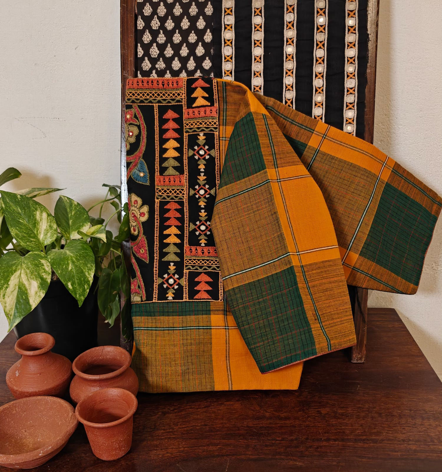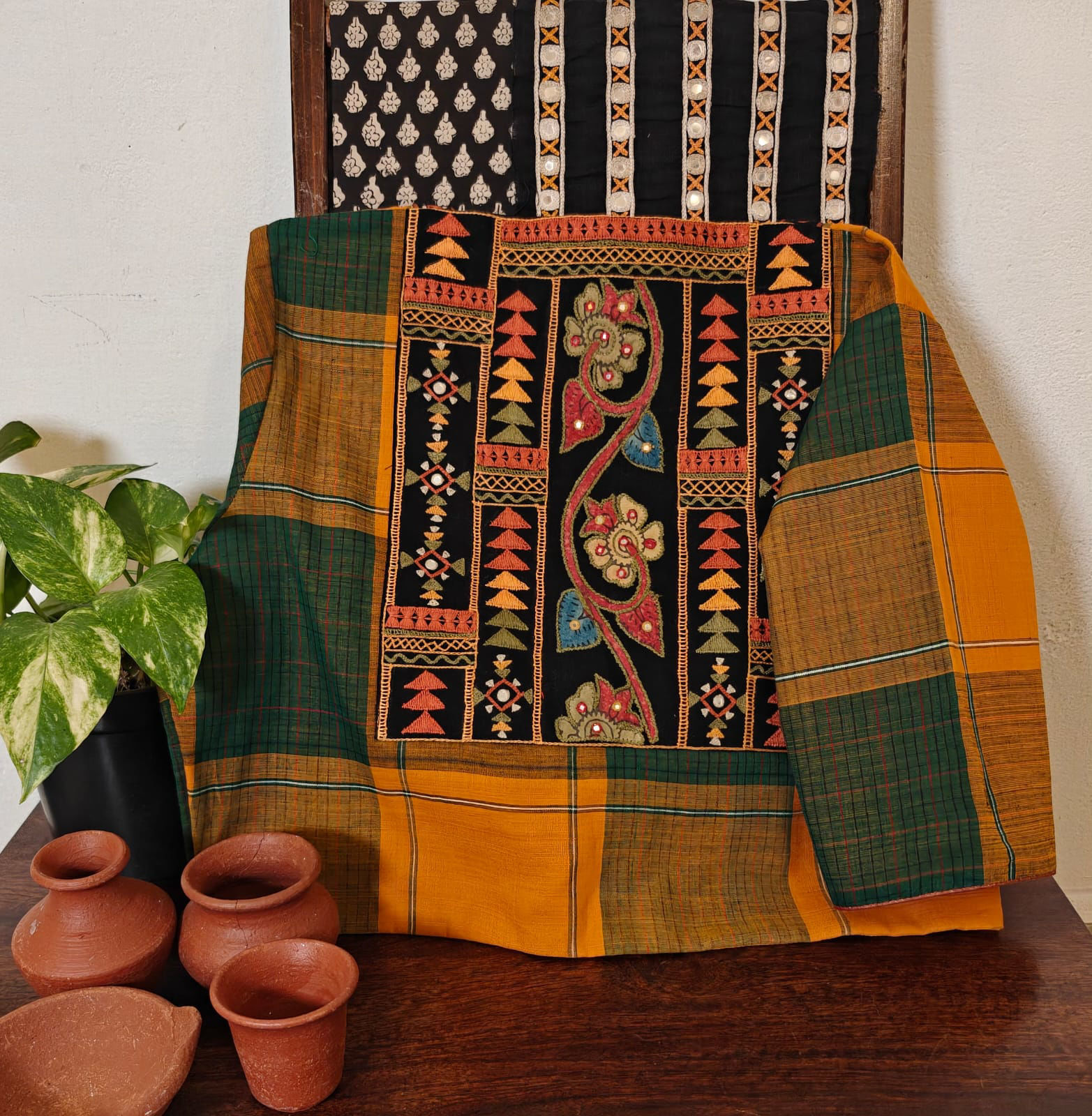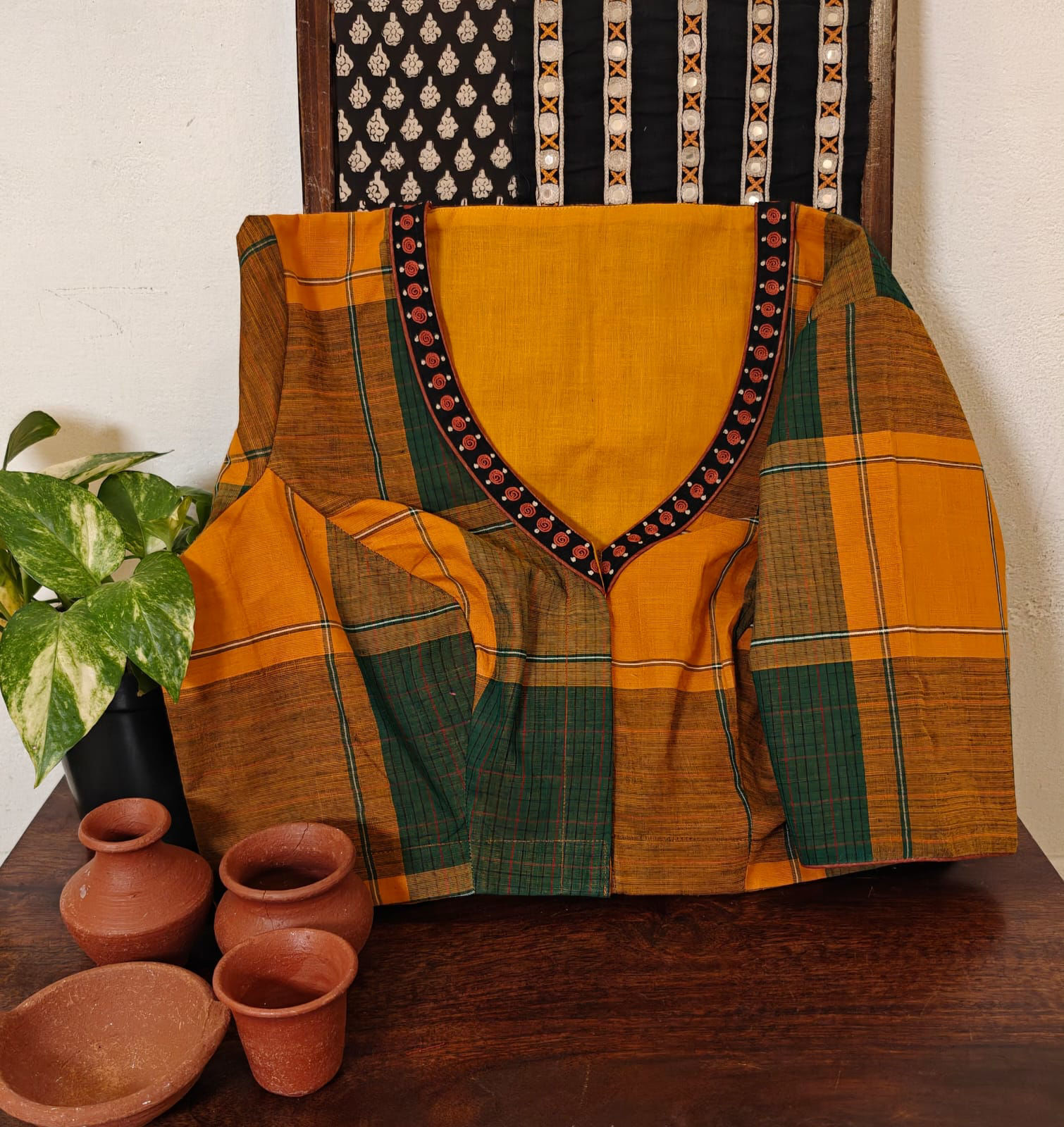 Our artisans creatively hand embroider, hand paint and hand print the blouses that come to you from the design house of SVASA. We use hand woven fabric extensively. You may notice very minute, almost insignificant flaws in the crafts since they are all handmade. We urge our patrons to overlook a few human errors that may have occurred in the process. Our aspirations are towards an empowered society, focusing on keeping traditional needlecraft alive for a long time to come.
