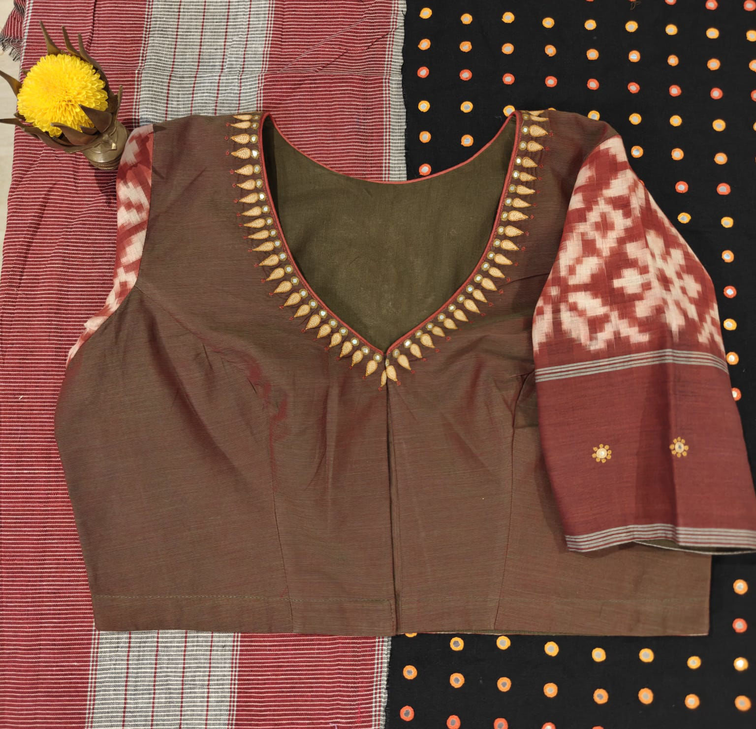 Our artisans creatively hand embroider, hand paint and hand print the blouses that come to you from the design house of SVASA. We use hand woven fabric extensively. You may notice very minute, almost insignificant flaws in the crafts since they are all handmade. We urge our patrons to overlook a few human errors that may have occurred in the process. Our aspirations are towards an empowered society, focusing on keeping traditional needlecraft alive for a long time to come.