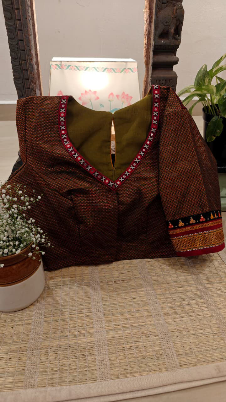 Our artisans creatively hand embroider, hand paint and hand print the blouses that come to you from the design house of SVASA. We use hand woven fabric extensively. You may notice very minute, almost insignificant flaws in the crafts since they are all handmade. We urge our patrons to overlook a few human errors that may have occurred in the process. Our aspirations are towards an empowered society, focusing on keeping traditional needlecraft alive for a long time to come.