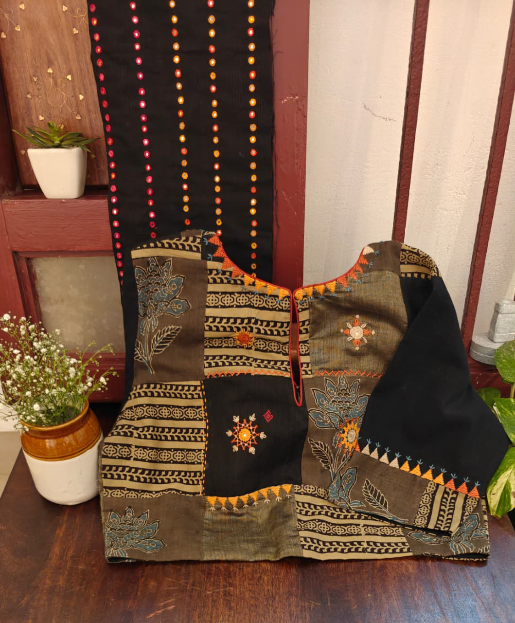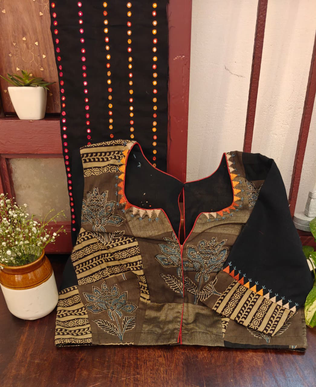 Our artisans creatively hand embroider, hand paint and hand print the blouses that come to you from the design house of SVASA. We use hand woven fabric extensively. You may notice very minute, almost insignificant flaws in the crafts since they are all handmade. We urge our patrons to overlook a few human errors that may have occurred in the process. Our aspirations are towards an empowered society, focusing on keeping traditional needlecraft alive for a long time to come.