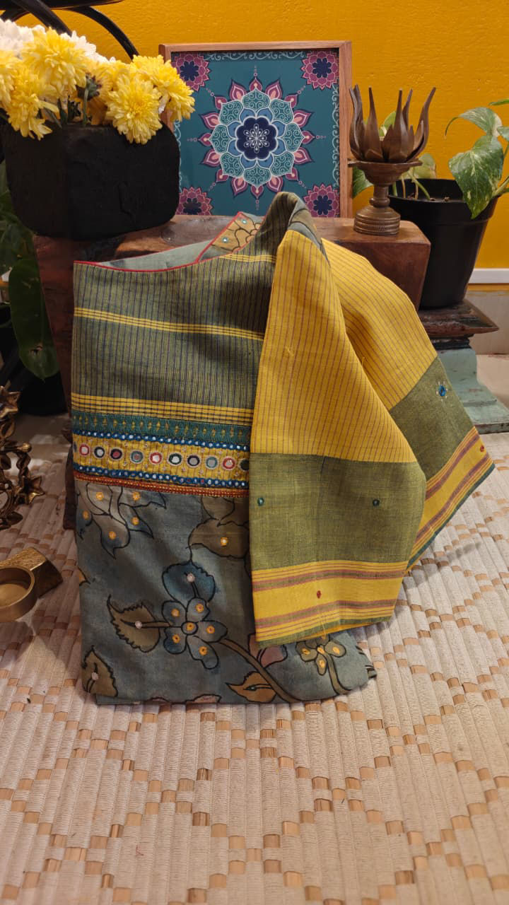 Our artisans creatively hand embroider, hand paint and hand print the blouses that come to you from the design house of SVASA. We use hand woven fabric extensively. You may notice very minute, almost insignificant flaws in the crafts since they are all handmade. We urge our patrons to overlook a few human errors that may have occurred in the process. Our aspirations are towards an empowered society, focusing on keeping traditional needlecraft alive for a long time to come.