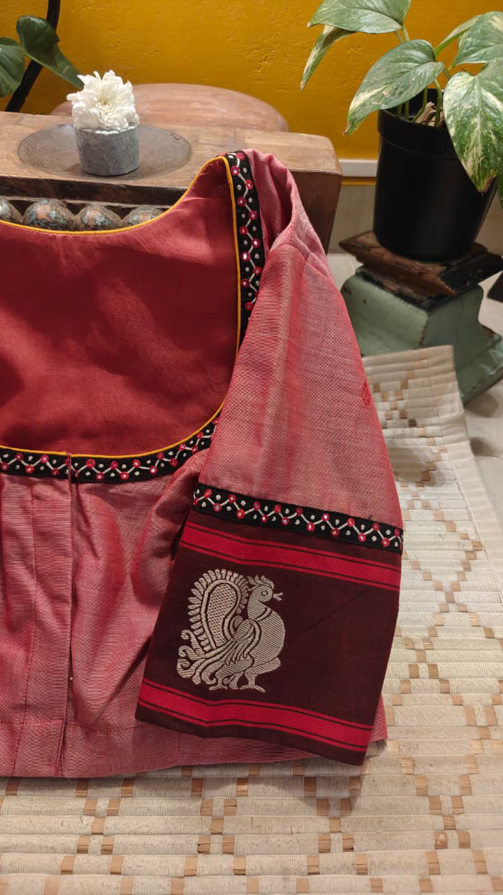 Our artisans creatively hand embroider, hand paint and hand print the blouses that come to you from the design house of SVASA. We use hand woven fabric extensively. You may notice very minute, almost insignificant flaws in the crafts since they are all handmade. We urge our patrons to overlook a few human errors that may have occurred in the process. Our aspirations are towards an empowered society, focusing on keeping traditional needlecraft alive for a long time to come.