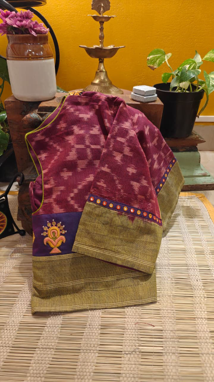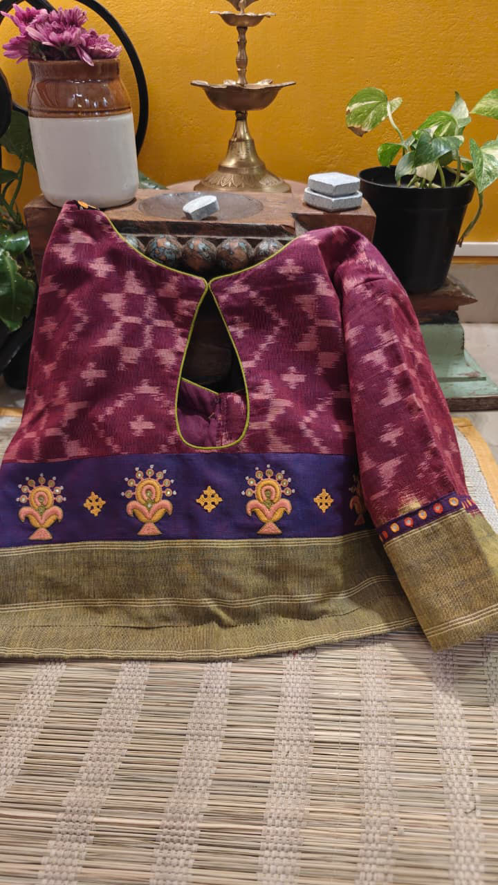 Our artisans creatively hand embroider, hand paint and hand print the blouses that come to you from the design house of SVASA. We use hand woven fabric extensively. You may notice very minute, almost insignificant flaws in the crafts since they are all handmade. We urge our patrons to overlook a few human errors that may have occurred in the process. Our aspirations are towards an empowered society, focusing on keeping traditional needlecraft alive for a long time to come.