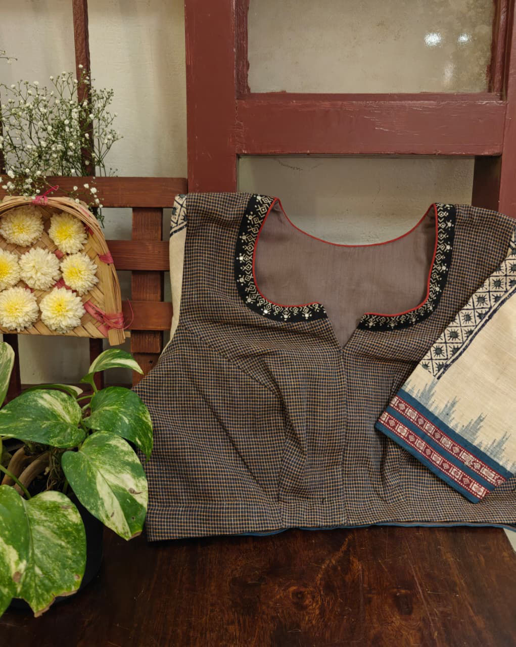 Our artisans creatively hand embroider, hand paint and hand print the blouses that come to you from the design house of SVASA. We use hand woven fabric extensively. You may notice very minute, almost insignificant flaws in the crafts since they are all handmade. We urge our patrons to overlook a few human errors that may have occurred in the process. Our aspirations are towards an empowered society, focusing on keeping traditional needlecraft alive for a long time to come.