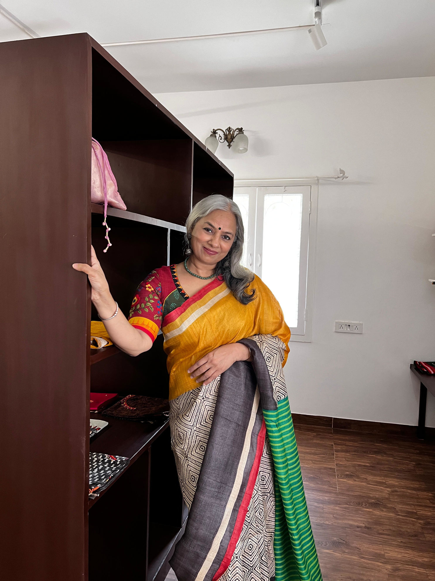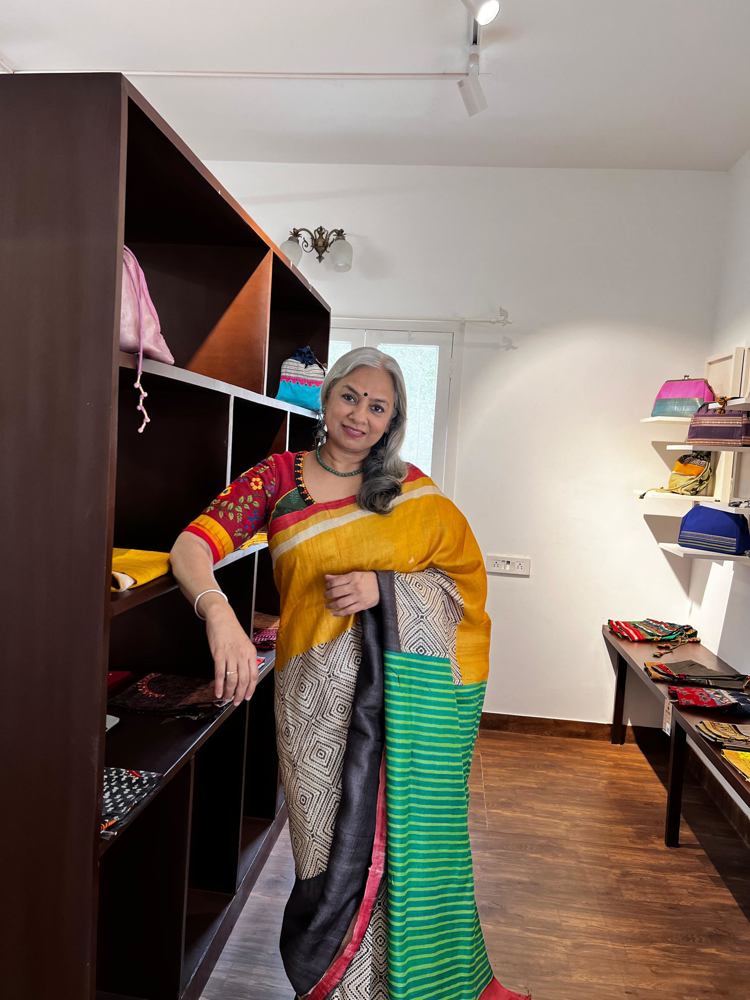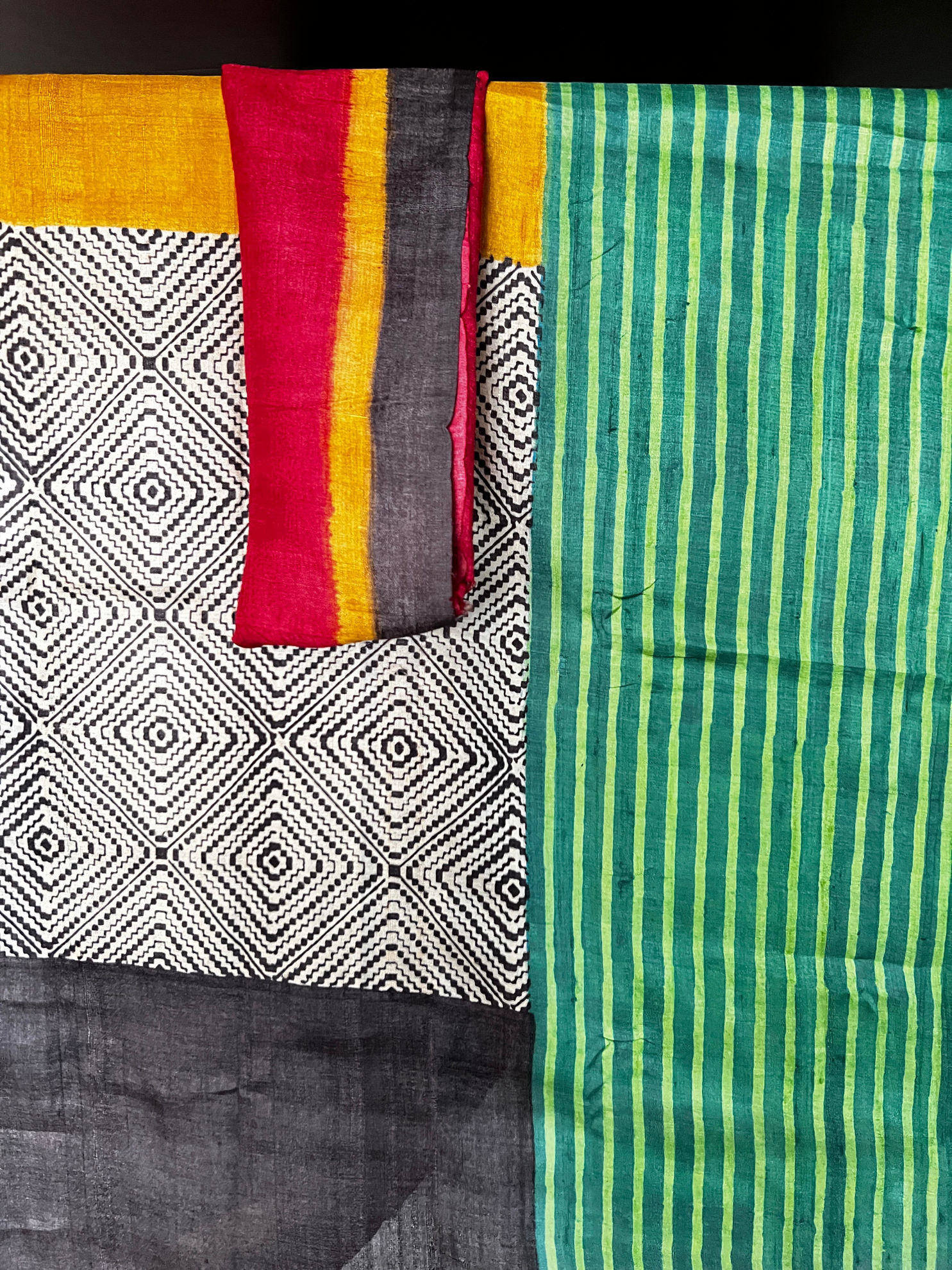 A beautiful interplay of colours, block printed on rich tussar—each shade settling into the weave with quiet depth and character. A piece that feels both vibrant and rooted, carrying the charm of handcrafted detail in every inch. Please note: Ready blouse is not included in the saree price.