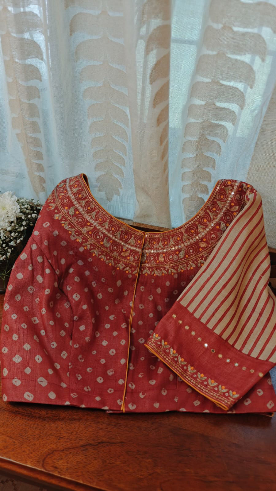 Red Bandhani and stripes